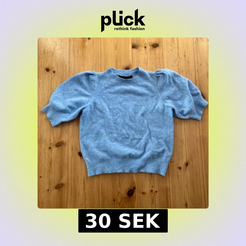 Superfin ljusblå stickad tröja från Vero Moda i storlek XS. Tröjan har korta puffärmar och ribbade muddar vid ärmslut och nederkant. Perfekt för dig som gillar en söt och enkel stil med en twist!