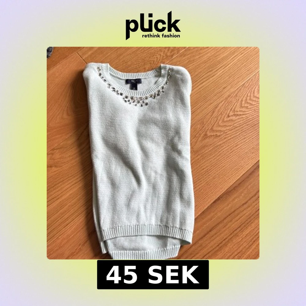 Superfin ljusblå stickad tröja från H&M med pärldetaljer runt halsringningen.