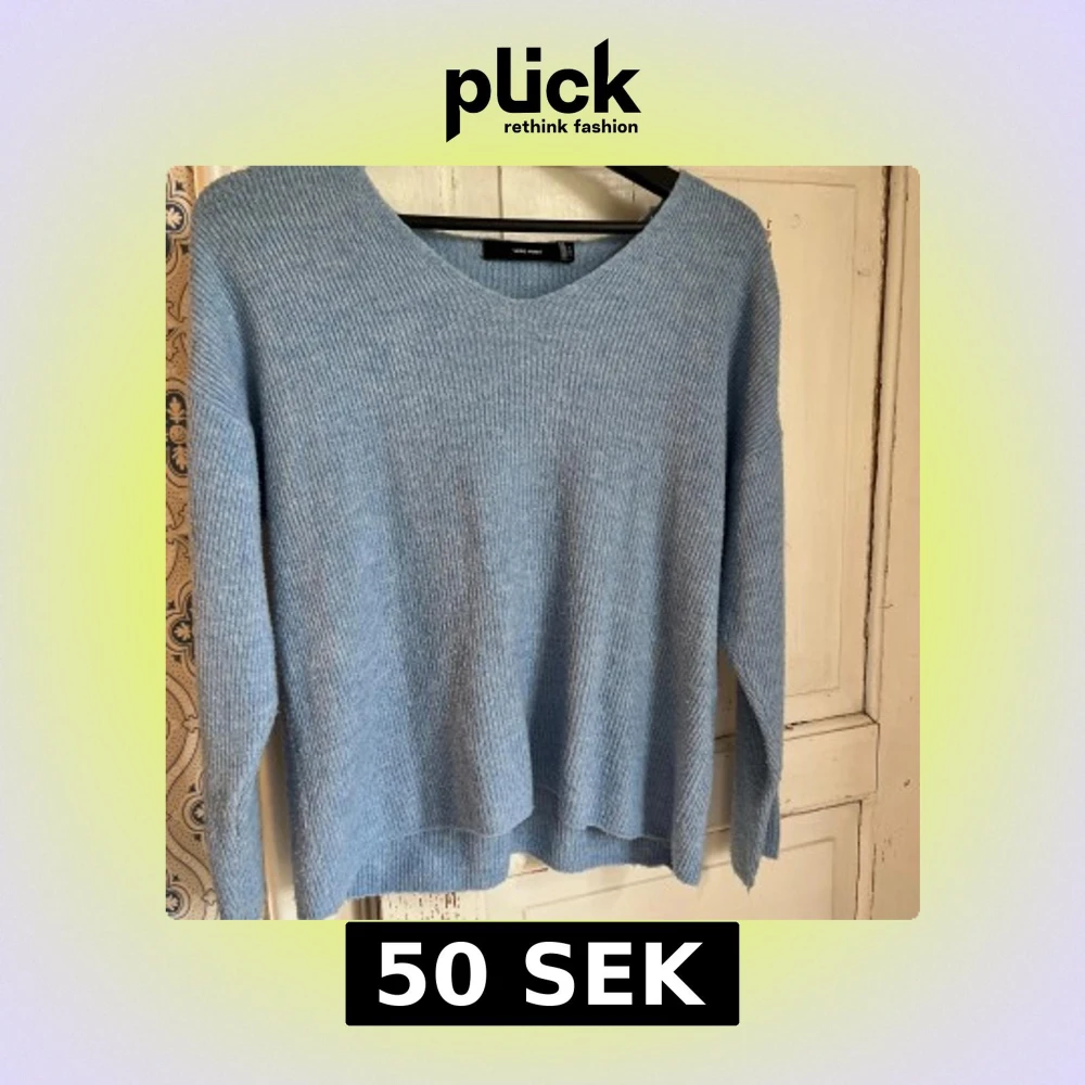 Mysig ljusblå stickad tröja från Vero Moda med v-ringning och lång ärm. Tröjan har en ribbad struktur och en relaxed passform som är perfekt för lager-på-lager. Enkel och stilren design som funkar till allt.
