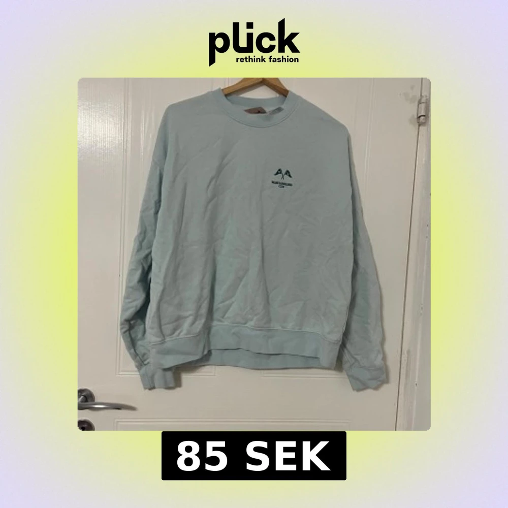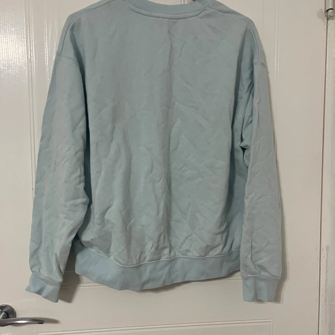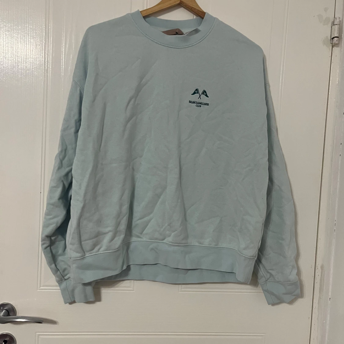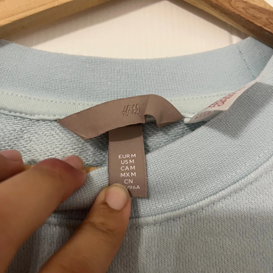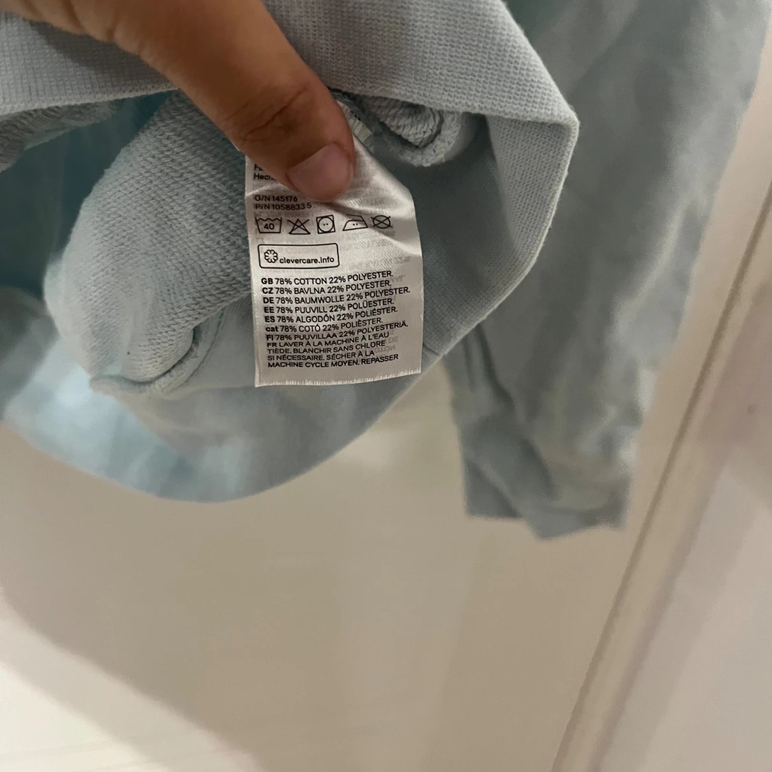 Ljusblå sweatshirt från H&M med rund hals och diskret tryck på bröstet. Tröjan har långa ärmar, ribbade muddar och är gjord i mjuk bomull och polyesterblandning. Perfekt för chill dagar och enkel att matcha med jeans eller joggers.