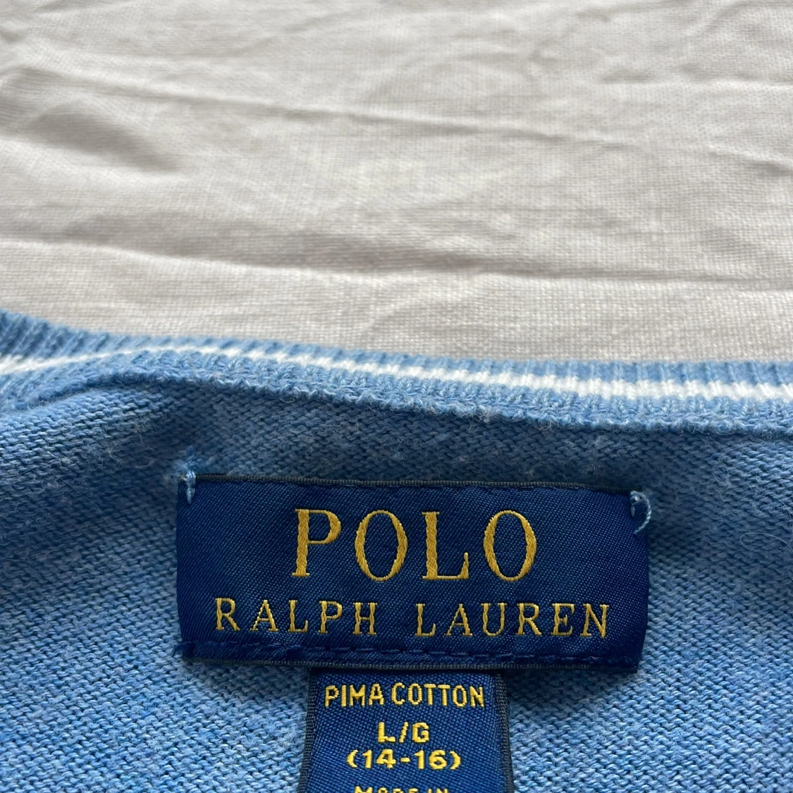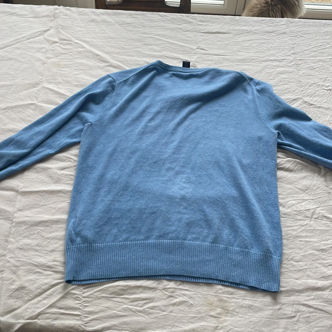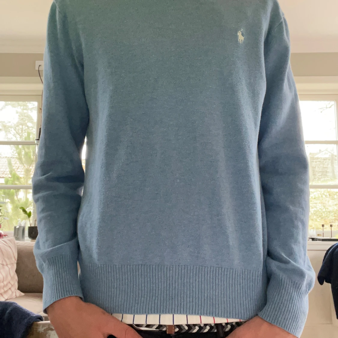 Säljer en ljusblå långärmad tröja från Polo Ralph Lauren i mjuk pima cotton. Klassisk rund halsringning och diskret broderad logga på bröstet. Perfekt för en stilren och avslappnad look. Padmssar dig ifrån 158-167