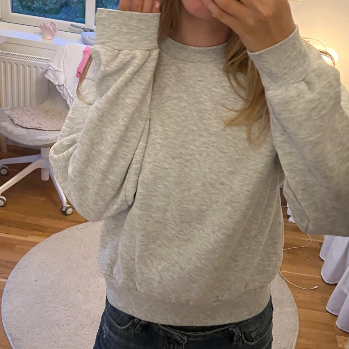 Enkel och stilren ljusgrå sweatshirt med rund halsringning och långa ärmar. Tröjan har en relaxed passform och breda muddar vid ärmslut och nederkant. Perfekt för en chill och avslappnad look.