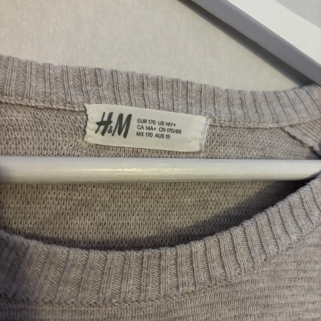 En enkel och stilren ljusgrå/beige tröja från H&M. Tröjan har rund hals, långa ärmar och ribbade muddar vid hals, ärmslut och nederkant. Perfekt för dig som gillar en clean look och vill ha något mjukt och bekvämt till hösten eller vintern.