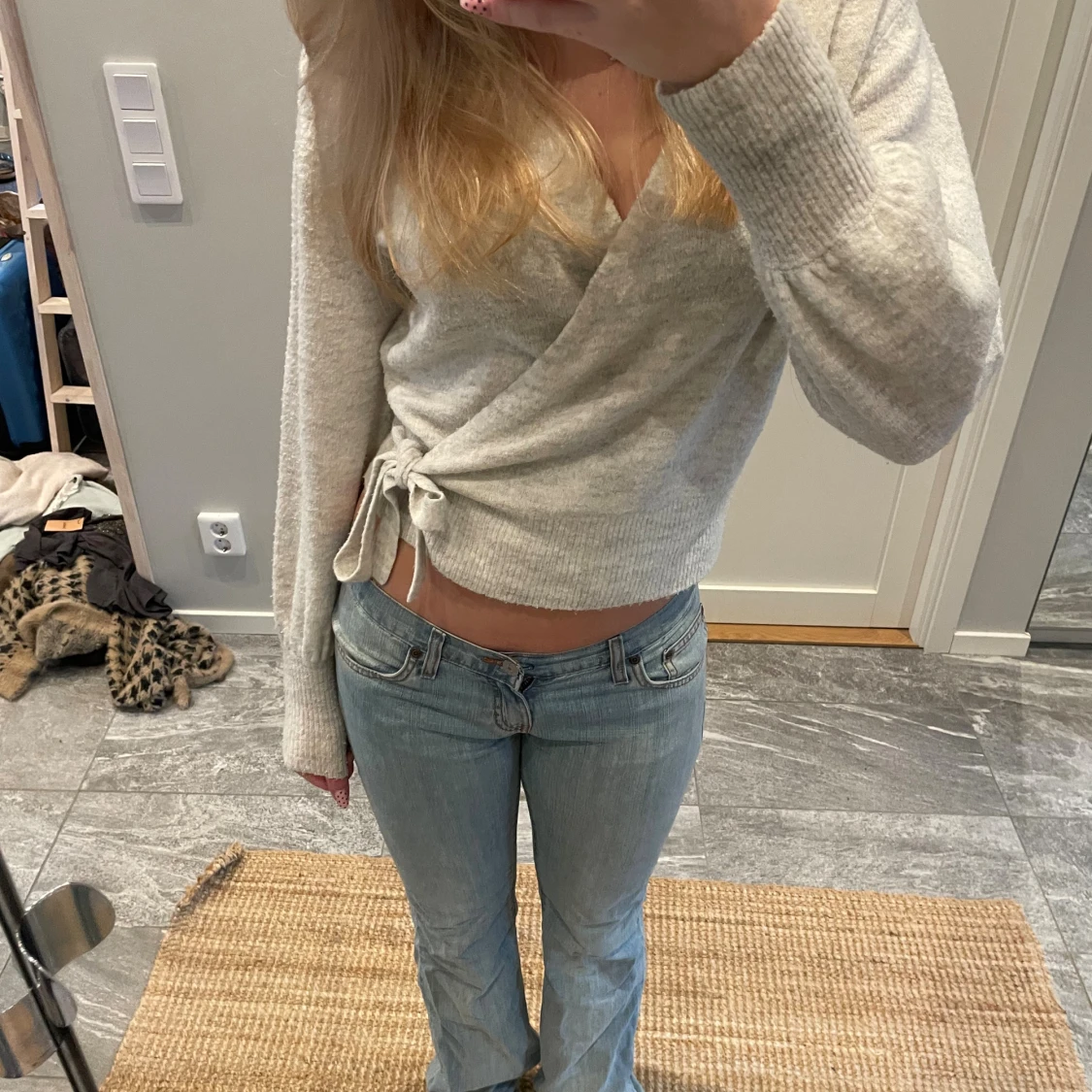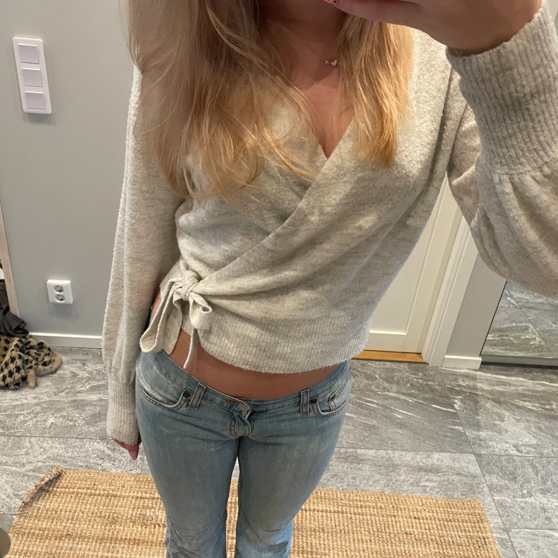 Supermysig ljusgrå omlott tröja, har någon konstig lapp men vet tyvärr inte vart den är ifrån🩷🩷🩷(skicka gärna prisförslag så kommer vi överens om nått)😇😇