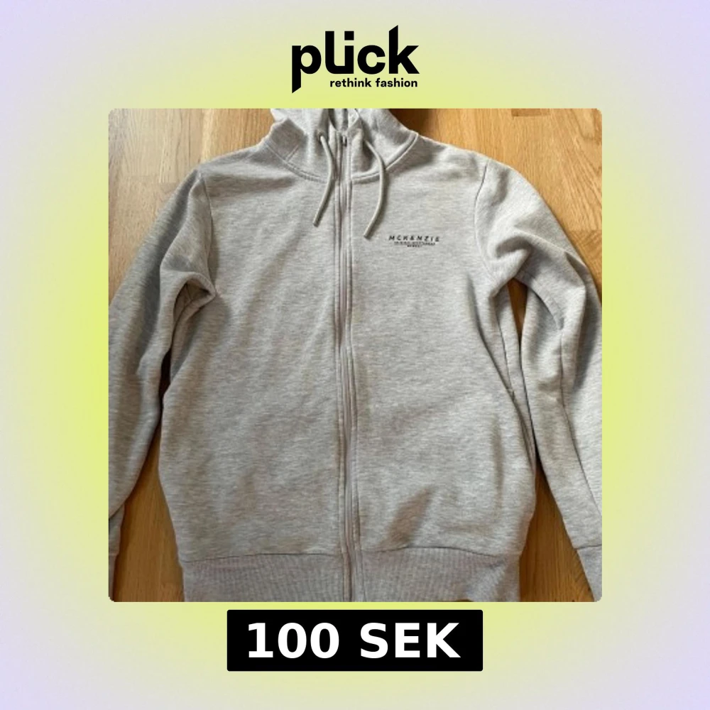 Ljusgrå hoodie från McKenzie med dragkedja framtill och huva med snörning. Tröjan har långa ärmar, ribbade muddar och en enkel, clean look. Perfekt för chill dagar eller när du vill ha en avslappnad stil.