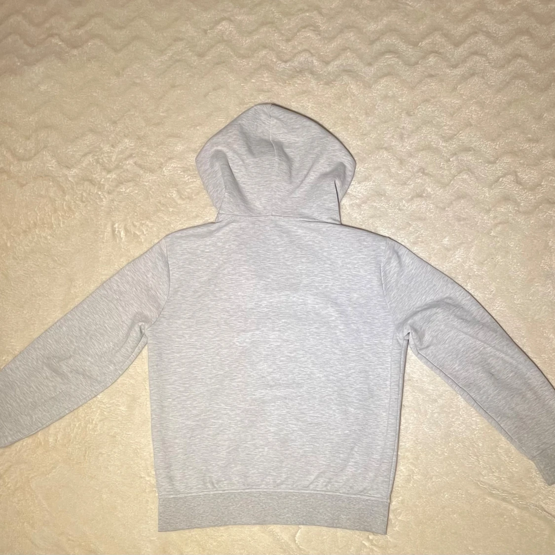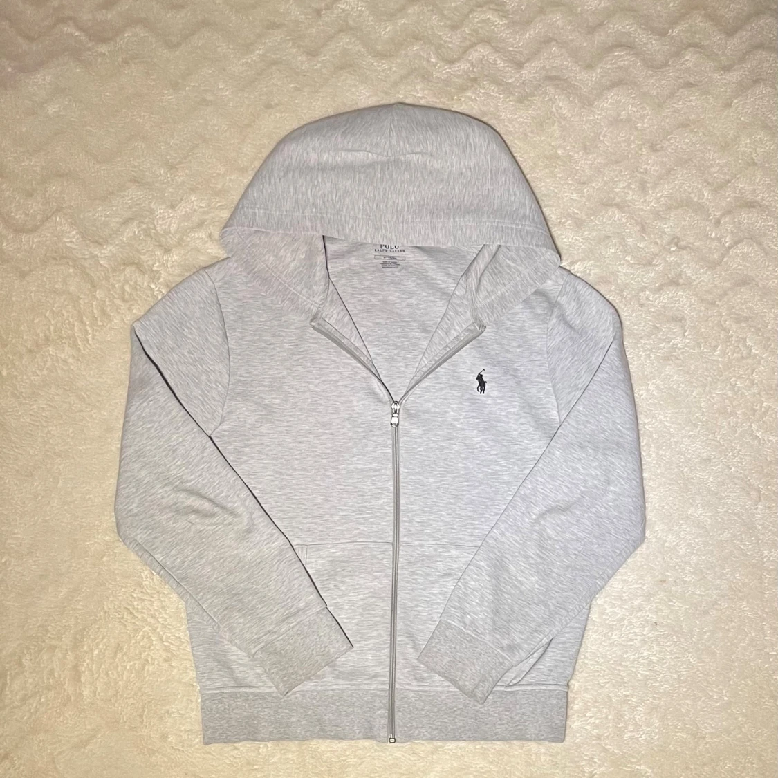 Snygg ljusgrå hoodie från Polo Ralph Lauren med dragkedja och klassisk logga broderad på bröstet. Tröjan har huva, två fickor fram och långa ärmar med ribbade muddar. Perfekt för chill dagar och enkel att matcha med jeans eller joggers. Pris kan diskuteras.