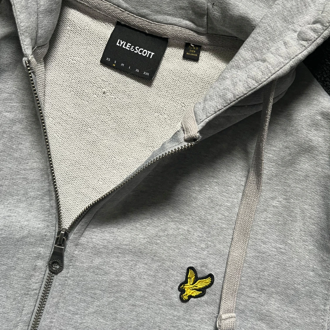 Säljer en ljusgrå hoodie från Lyle & Scott med dragkedja och huva. Tröjan har två fickor framtill och den klassiska gula loggan på bröstet. Perfekt för en avslappnad stil. Är i Storlek S och är i mycket bra skick med inga defekter på. Hör av er vid frågor eller funderingar!