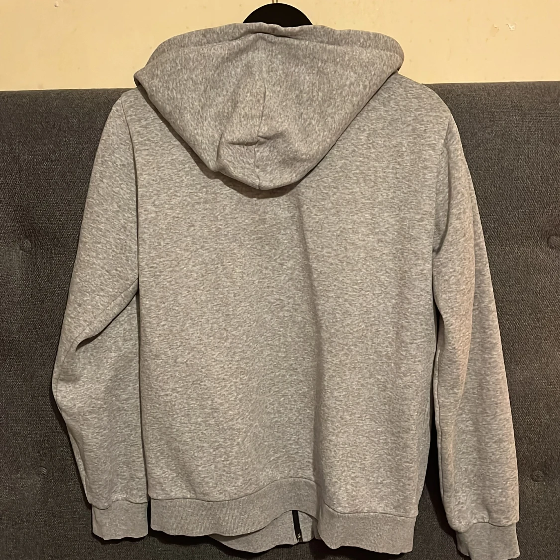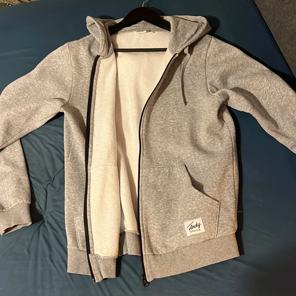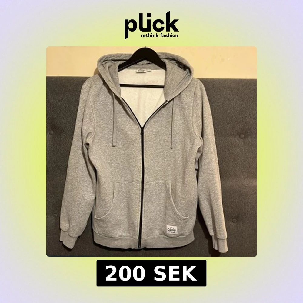 Säljer en ljusgrå hoodie från And1 med dragkedja framtill och två stora fickor. Tröjan har huva med dragsko och ribbade muddar vid ärmslut och nederkant. Perfekt för en avslappnad stil.