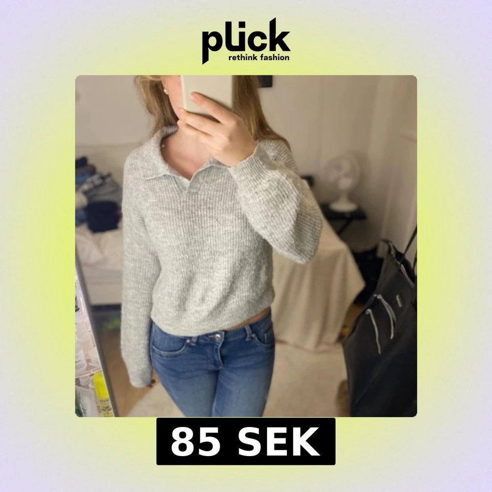 Supermysig grå stickad tröja från Kappahl med klassisk krage och ribbad struktur. Långärmad och lite croppad modell som är perfekt för lager-på-lager. 💗 Är storlek 146/152 men är som storlek XS/S 💕
