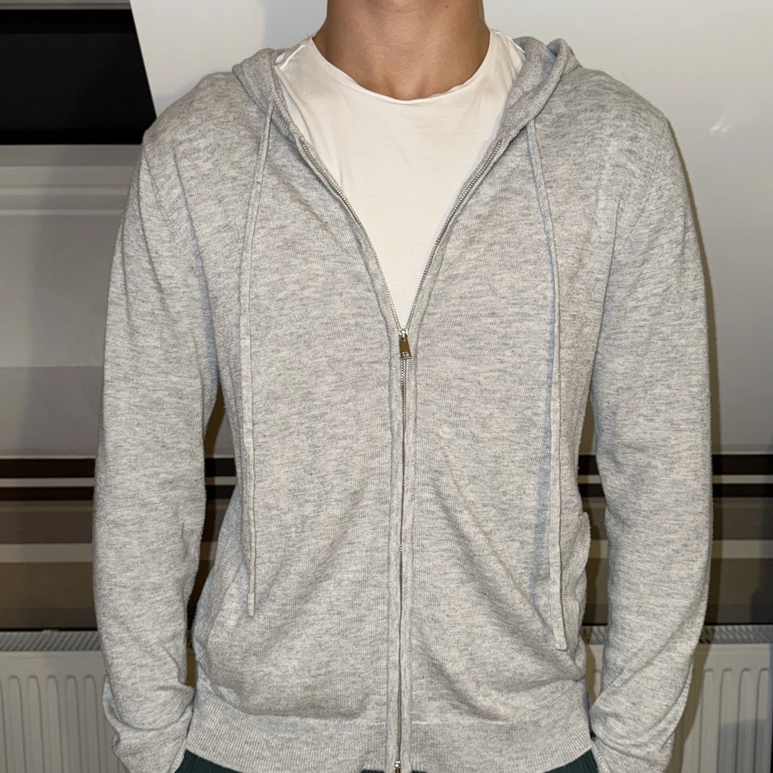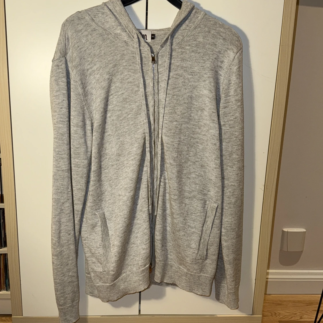 Säljer denna riktigt feta ljusgrå 100% Kashmir zip, storlek S från Don med dragkedja framtill och snörning i huvan. Tröjan är i mjuk bomullsmix, har långa ärmar och två fickor framtill. Perfekt för chill dagar eller när du vill ha en enkel och clean look. Ny pris ca 1000kr, mitt pris 499. Vid funderingar är det bara att höra av sig!