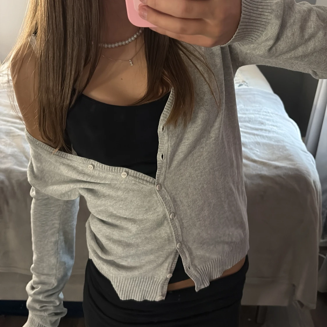 Ljusgrå kofta med knappar
