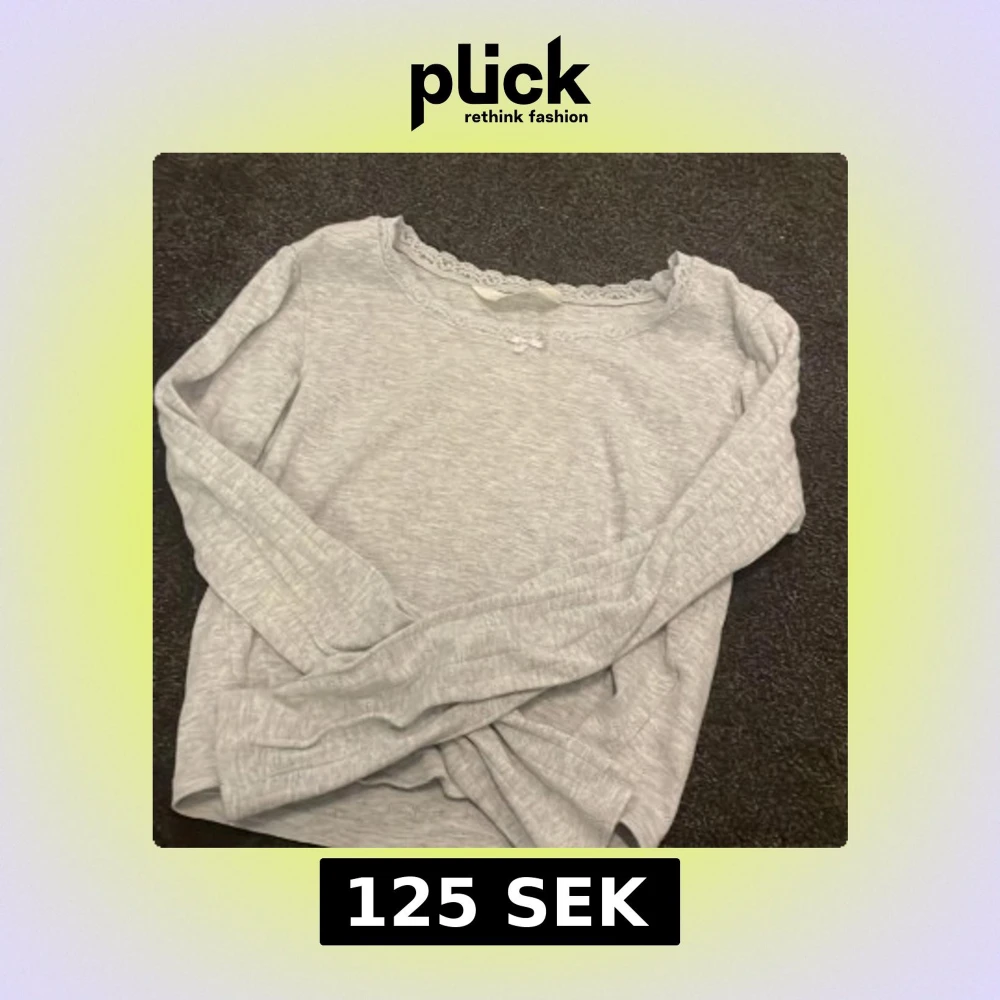 Supersöt ljusgrå långärmad topp från H&M med spetsdetaljer runt halsringningen och en liten rosett framtill. Mjuk och skön bomullskänsla, perfekt för dig som gillar en enkel men ändå söt stil.