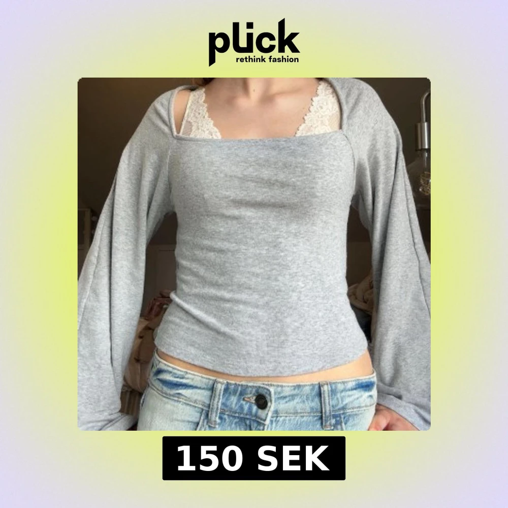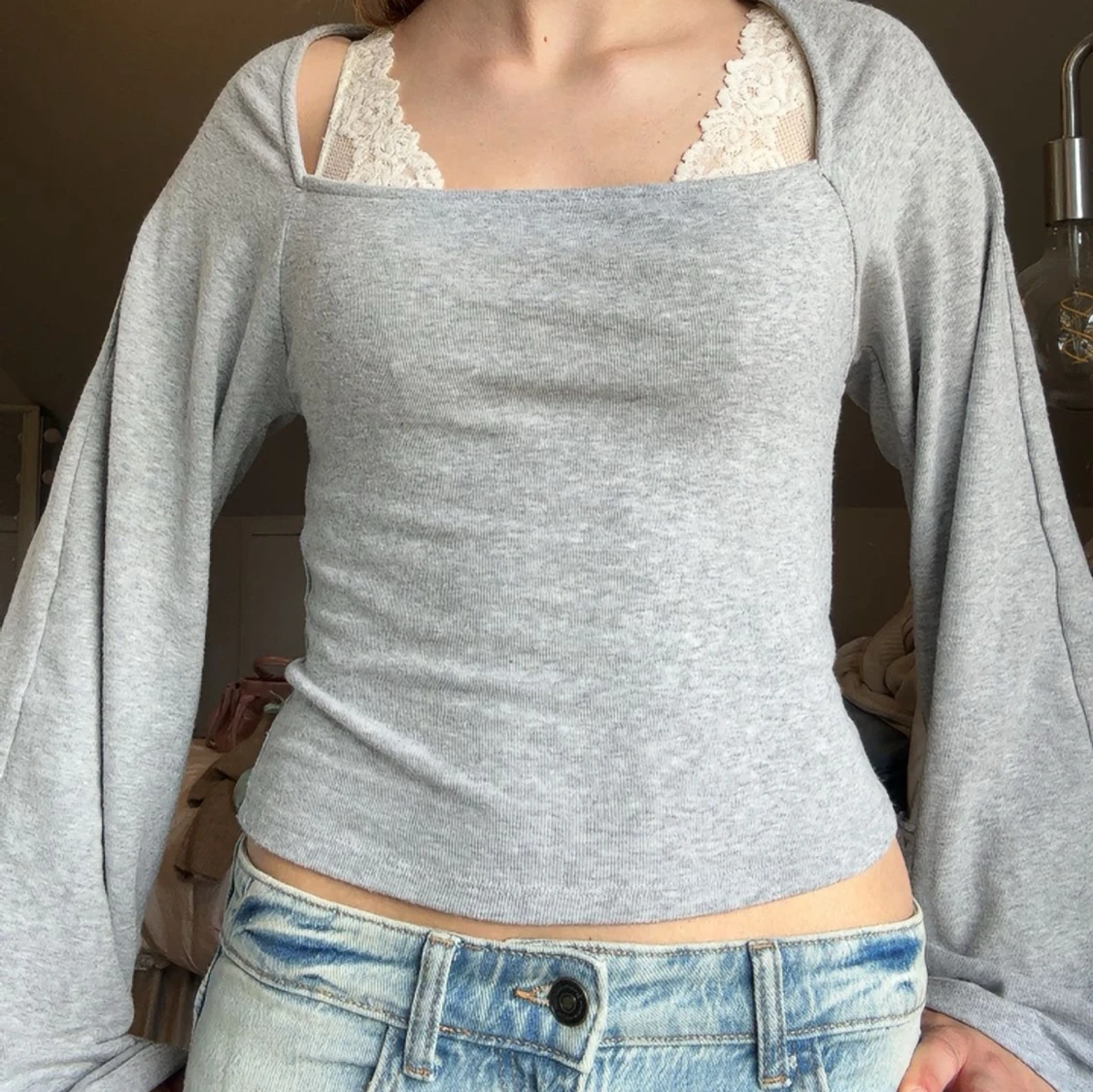 Ljusgrå långärmad tröja med bred hals och vida armar