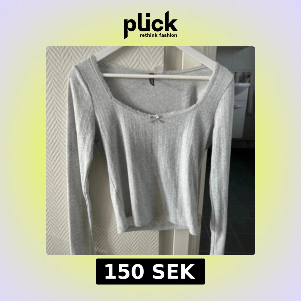 Supersöt ljusgrå långärmad topp från H&M med pointelle mönster, spetskant vid urringningen och en liten rosett framtill. Mjuk och stretchig bomullsblandning som sitter skönt på kroppen. Knappt använd 💕 passar mig som är strl S