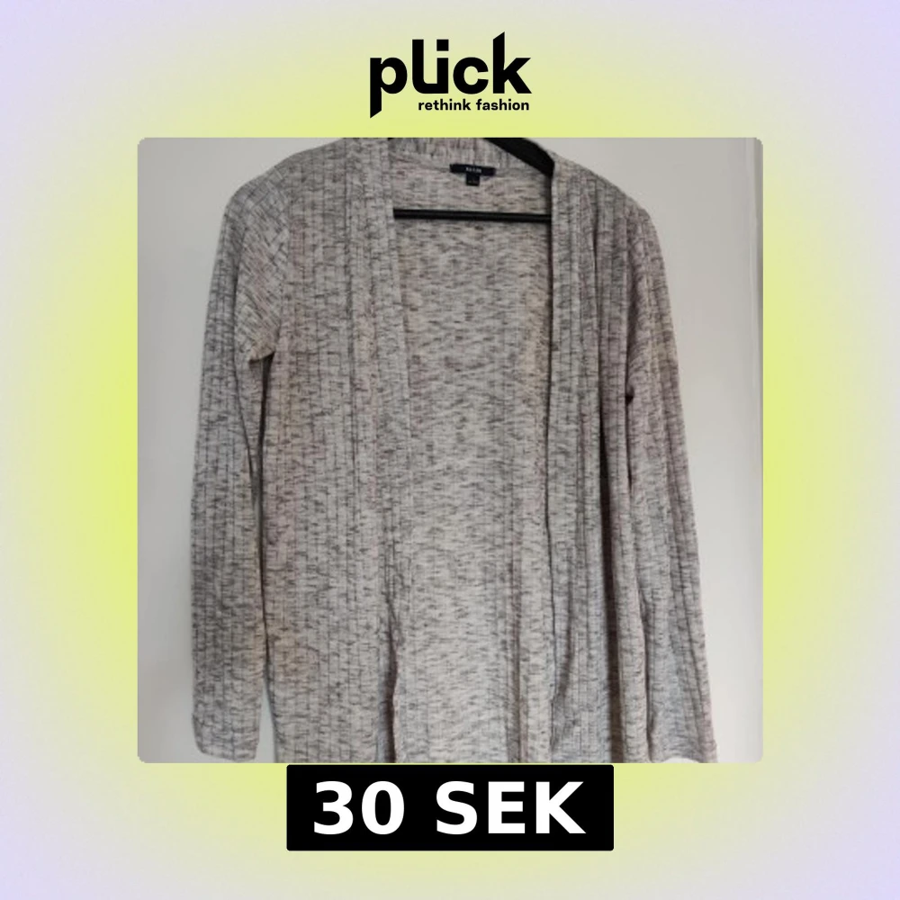En ljusgrå, långärmad kofta från Kiabi med ribbad struktur. Koftan är öppen framtill och har en avslappnad passform. Perfekt att slänga på sig över en topp eller t-shirt.