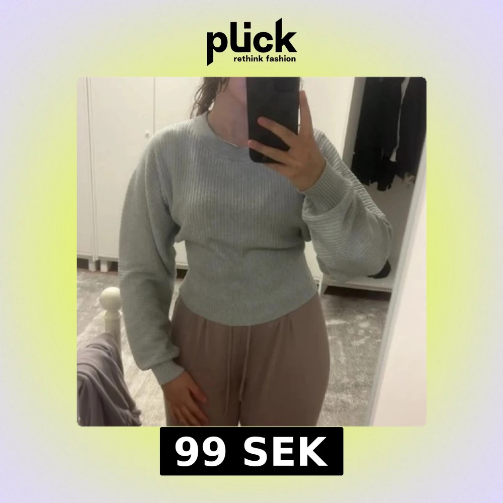 Säljer en ljusgrå stickad tröja med ribbad struktur och rund hals. Tröjan har långärmade, lite puffiga ärmar och sitter snyggt med en tightare passform vid midjan. Perfekt för dig som gillar stilrena och bekväma plagg. Helt oanvänd!