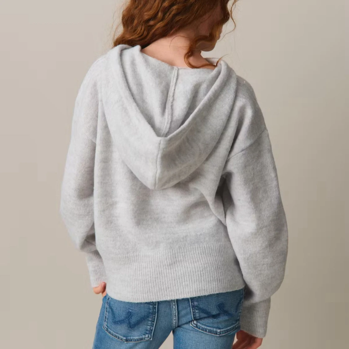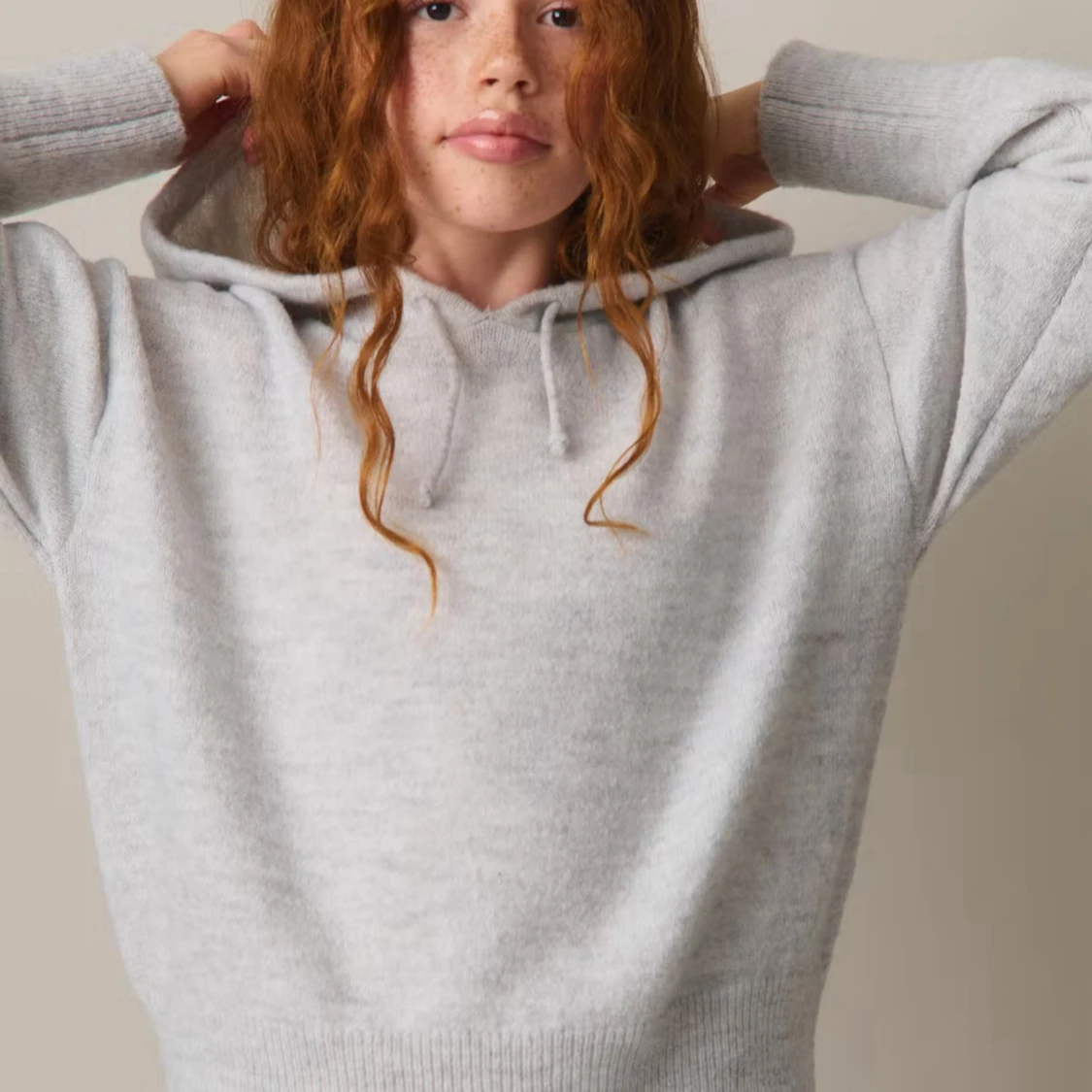 Ljusgrå stickad hoodie med huva (SÄNKT PRIS!!)