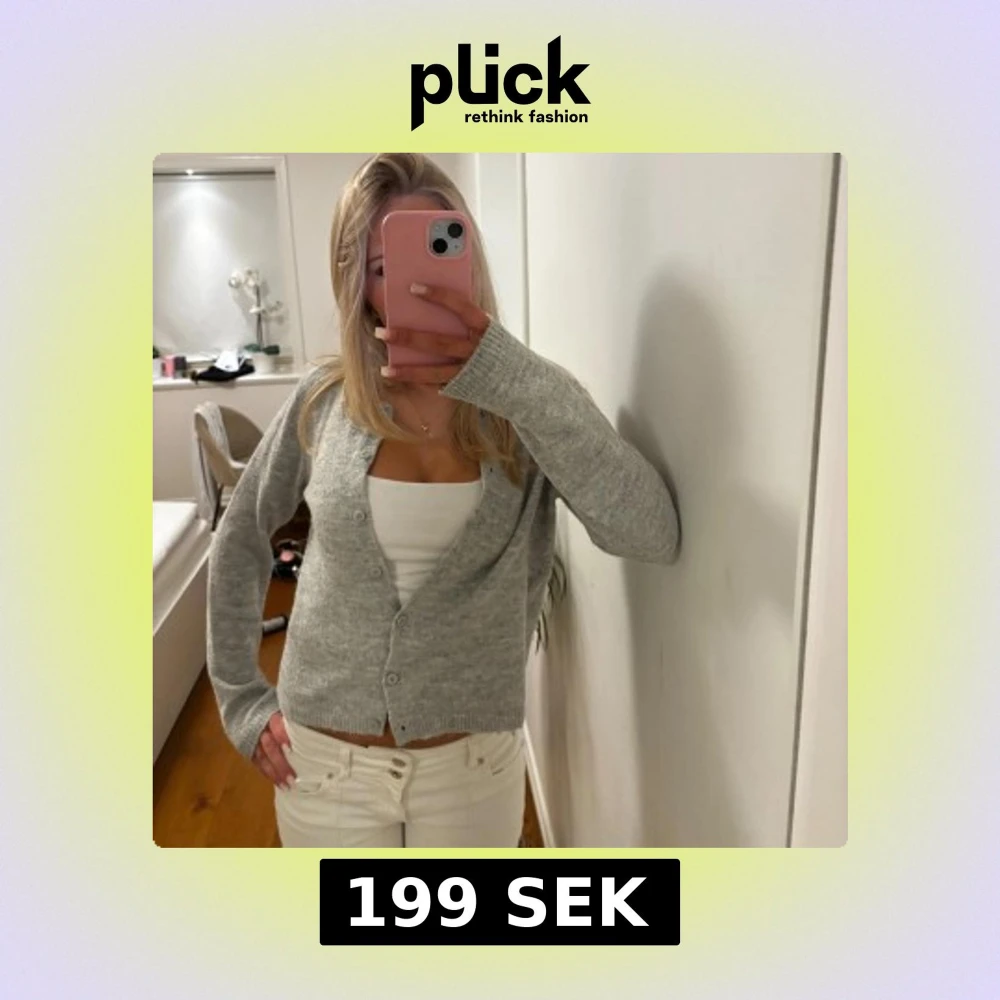 Supermysig ljusgrå stickad kofta med rund hals och knappar hela vägen framtill🩷🩷
