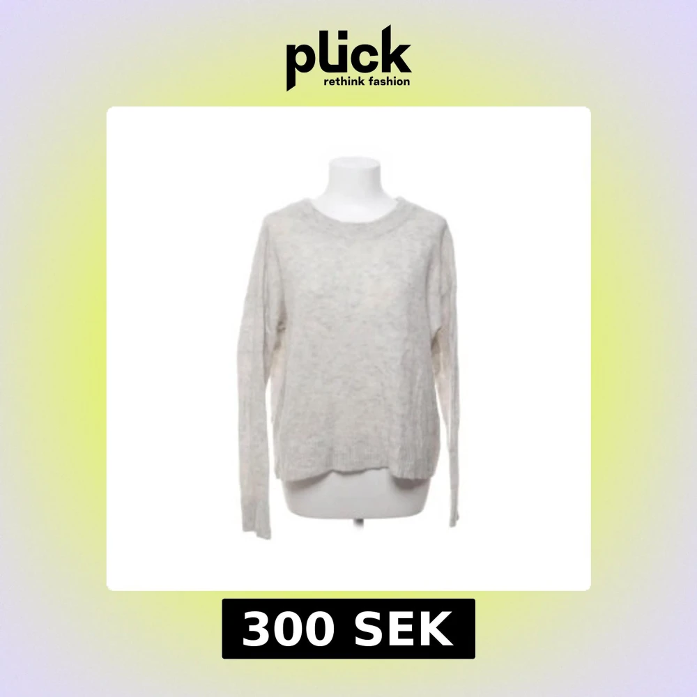 Mysig ljusgrå stickad tröja med rund hals och långa ärmar. Tröjan har en avslappnad passform och ribbade muddar vid ärmslut och nederkant. Perfekt för lager-på-lager under kyliga dagar.
