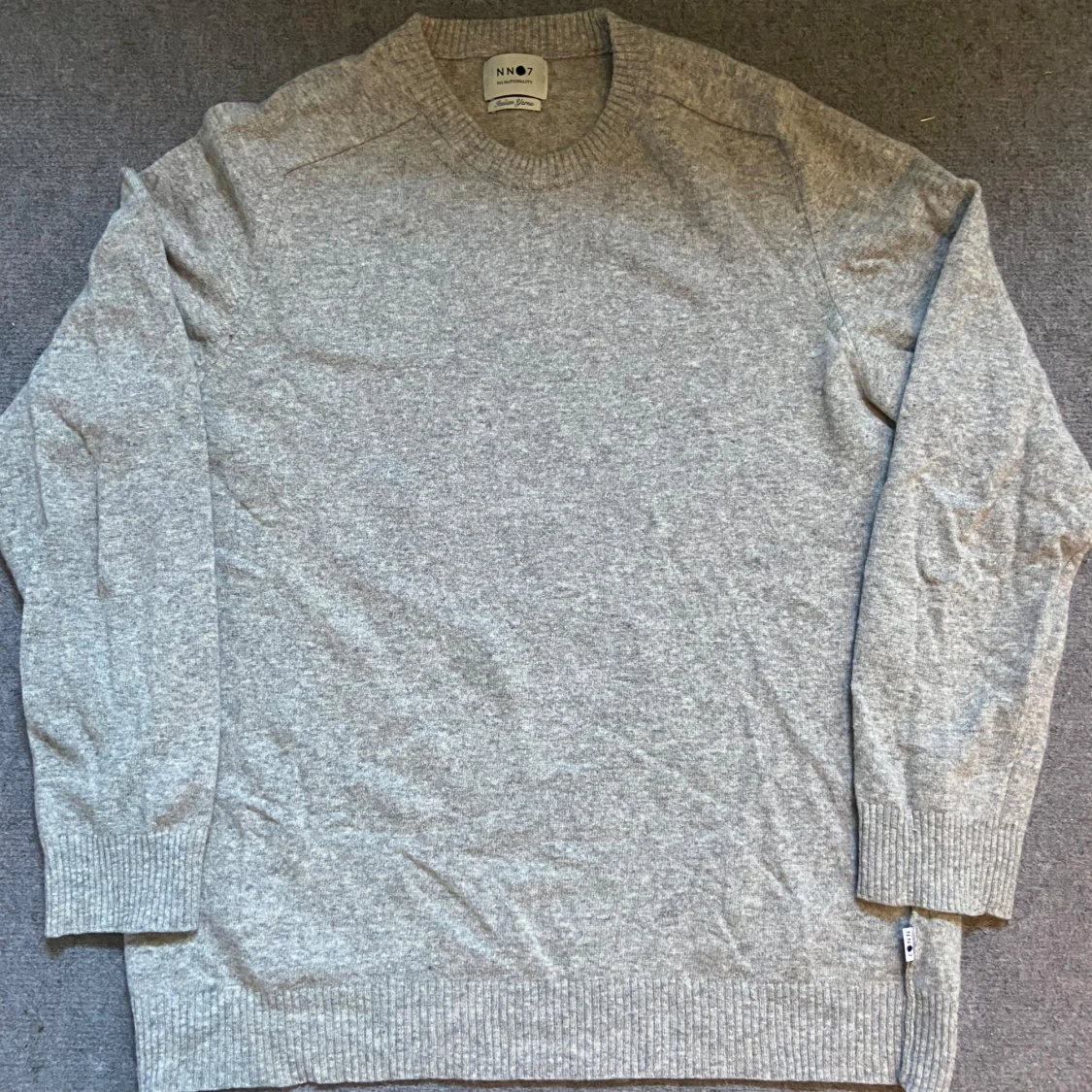 Säljer en stilren ljusgrå stickad tröja från NN07. Tröjan har rund halsringning, långa ärmar och ribbade muddar vid ärmslut och nederkant. Perfekt för lager-på-lager och enkel att matcha med olika outfits.