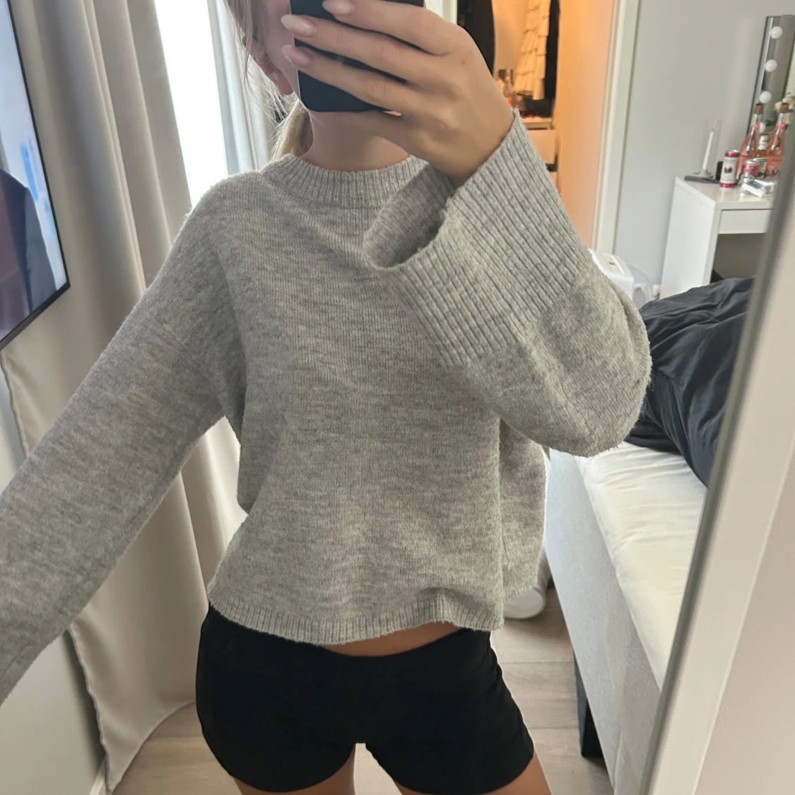 Supermjuk och enkel ljusgrå stickad tröja med loose fit och långa ärmar. Tröjan har ribbade muddar vid ärmslut och halsringning.