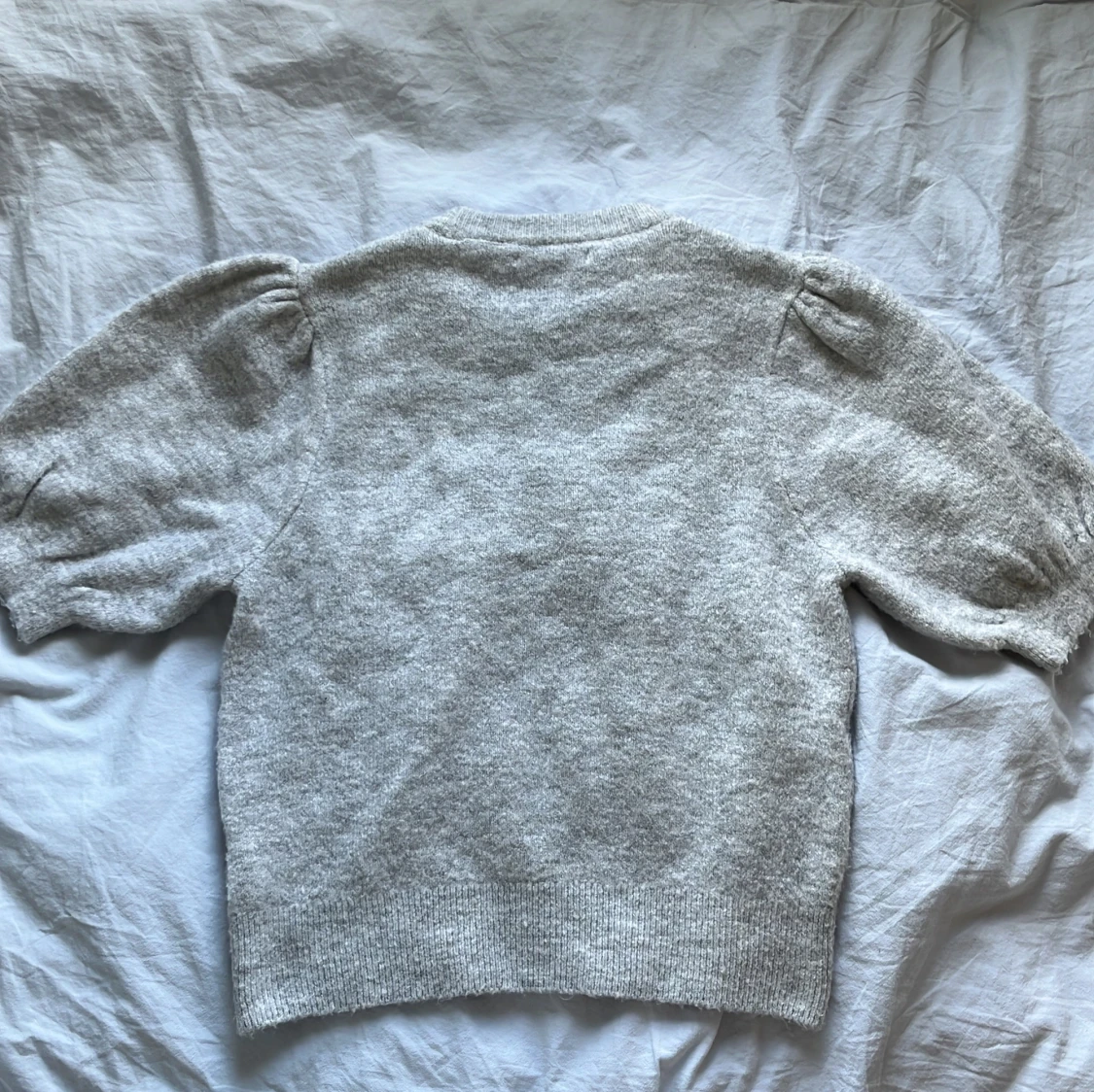 Superfin ljusgrå stickad tröja med korta puffärmar från Gina Tricot. Tröjan har rund halsringning och ribbade muddar vid ärmslut och nederkant. Perfekt för lager-på-lager och enkel att styla. Kom privat för övriga funderingar, pris kan diskuteras 💕