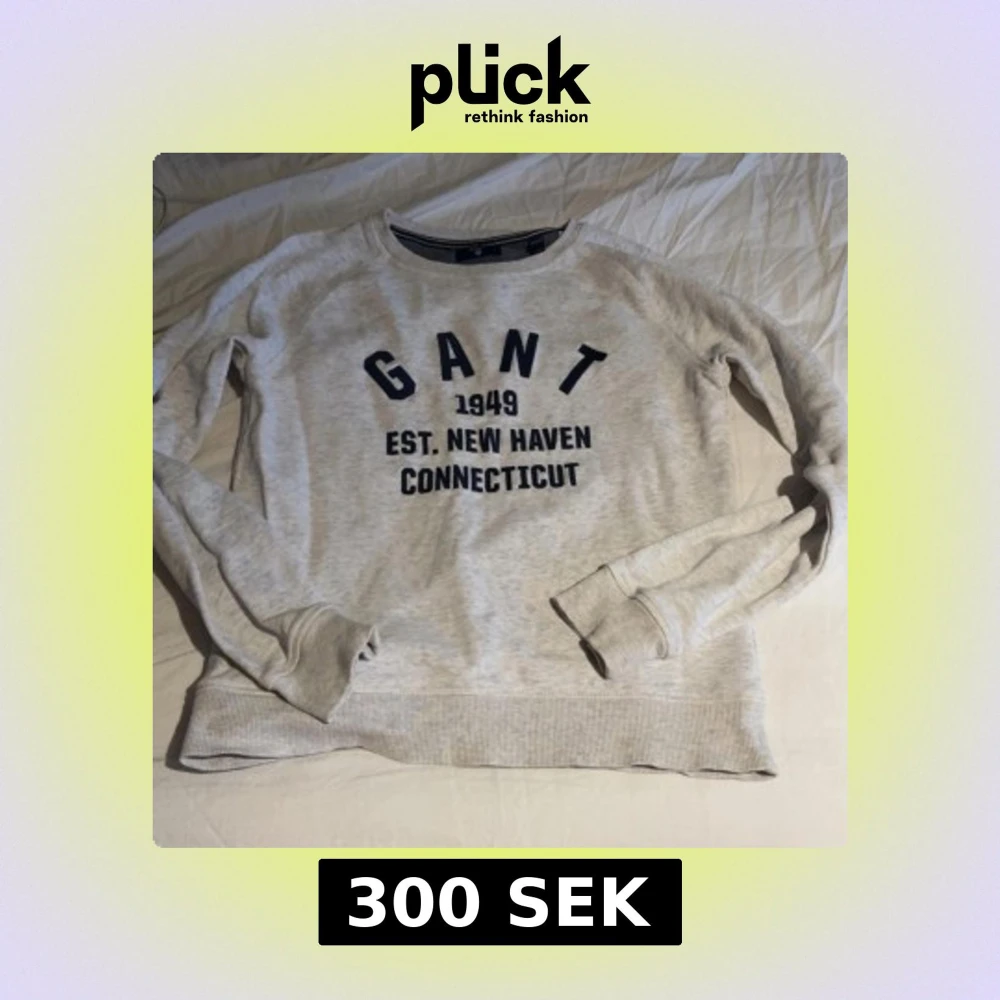 Ljusgrå sweatshirt från GANT med mörkblå tryck framtill: 'GANT 1949 EST. NEW HAVEN CONNECTICUT'. Tröjan har rund hals, ribbade muddar och nederkant. Perfekt för en chill och sportig look.