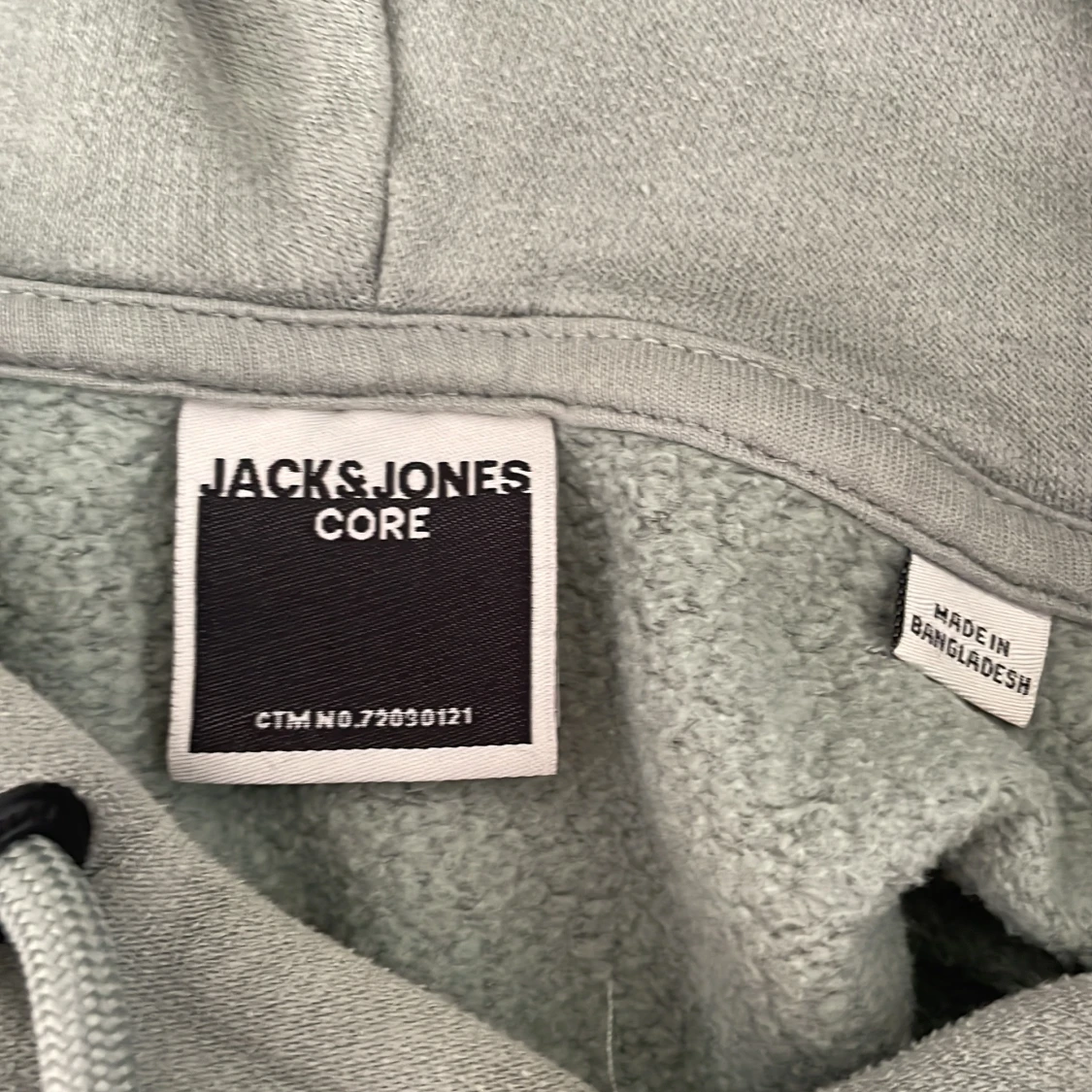 Snygg ljusgrön hoodie från Jack & Jones Core med klassisk huva och snörning. Tröjan har en stor magficka och svart patch med logga på ärmen. Mjuk insida och ribbade muddar för extra komfort. Perfekt för chill dagar eller när du vill ha en clean look.