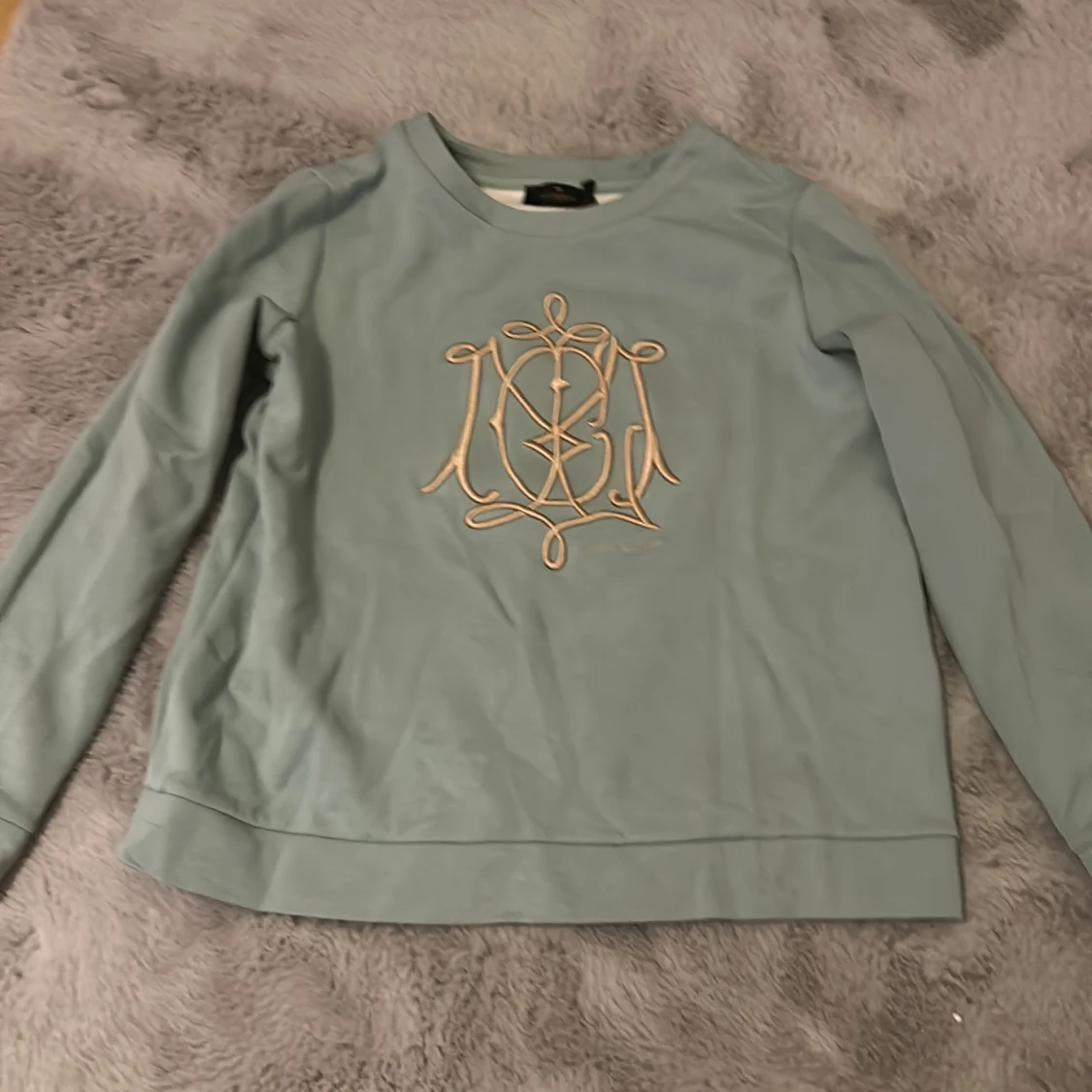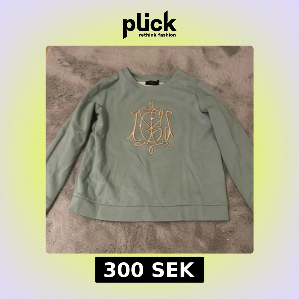 Snygg ljusblå långärmad tröja med ett stort broderat mönster i vitt och guld på bröstet. Tröjan har rund halsringning och är tillverkad i mjukt bomullsmaterial. Perfekt för dig som gillar stilrena detaljer och en chill vibe.