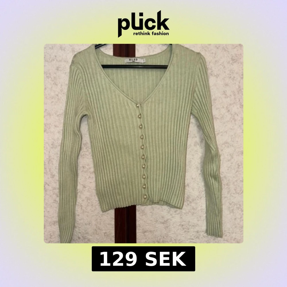 Superfin ljusgrön ribbad kofta från NA-KD med v-ringning och pärlknappar framtill. Långärmad och figurnära passform, perfekt att styla med jeans eller kjol. Materialet är mjukt och stretchigt för en bekväm känsla.