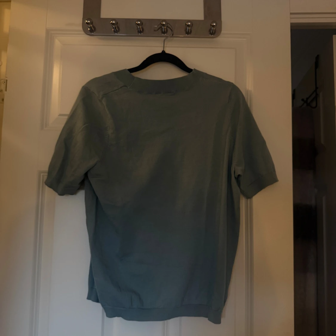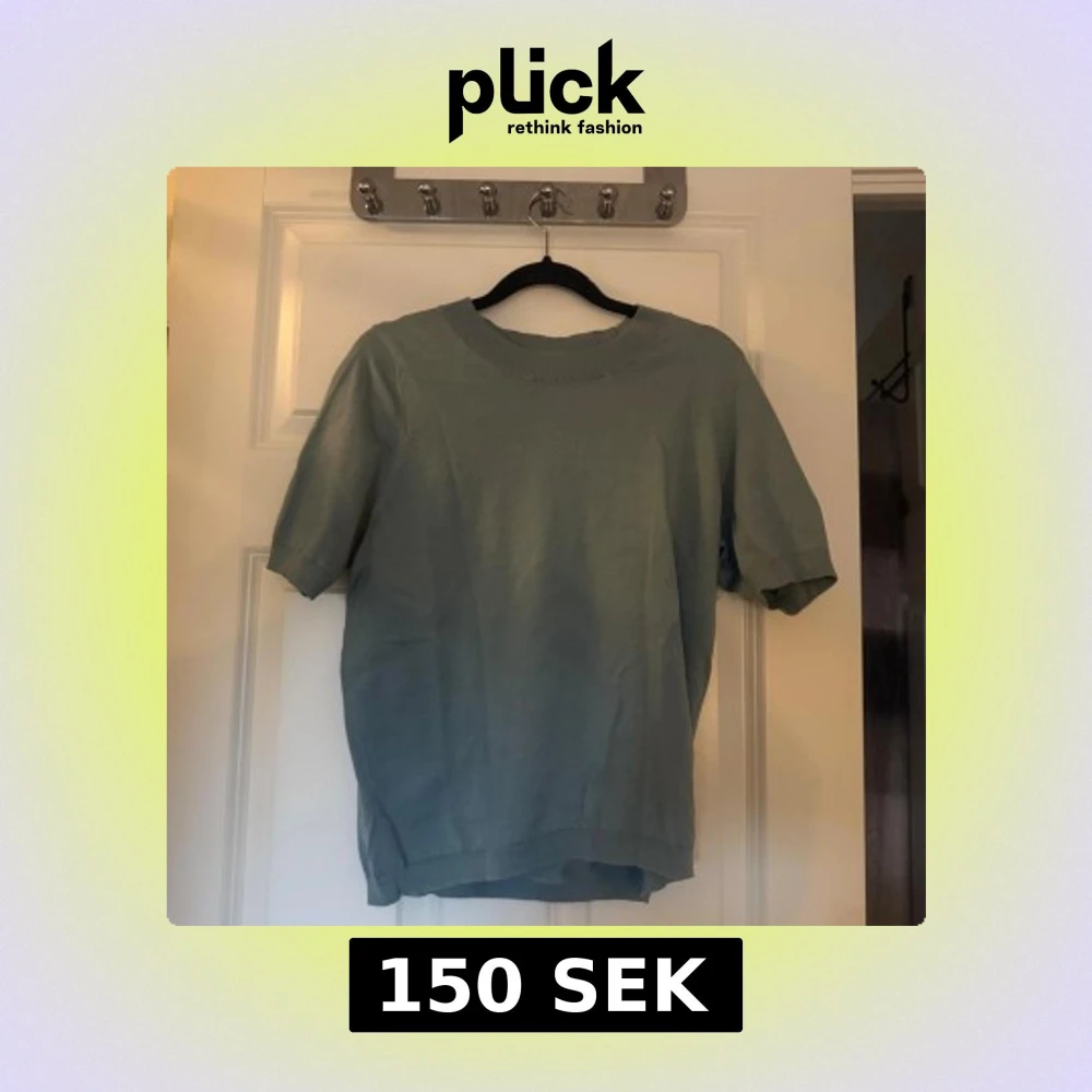 En stilren ljusgrön stickad tröja med korta ärmar och rund halsringning. Perfekt för dig som gillar en enkel och clean look. Tröjan har ribbade detaljer vid hals, ärmslut och nederkant.