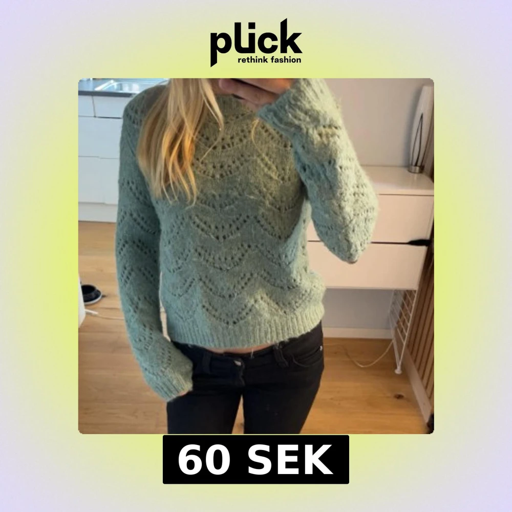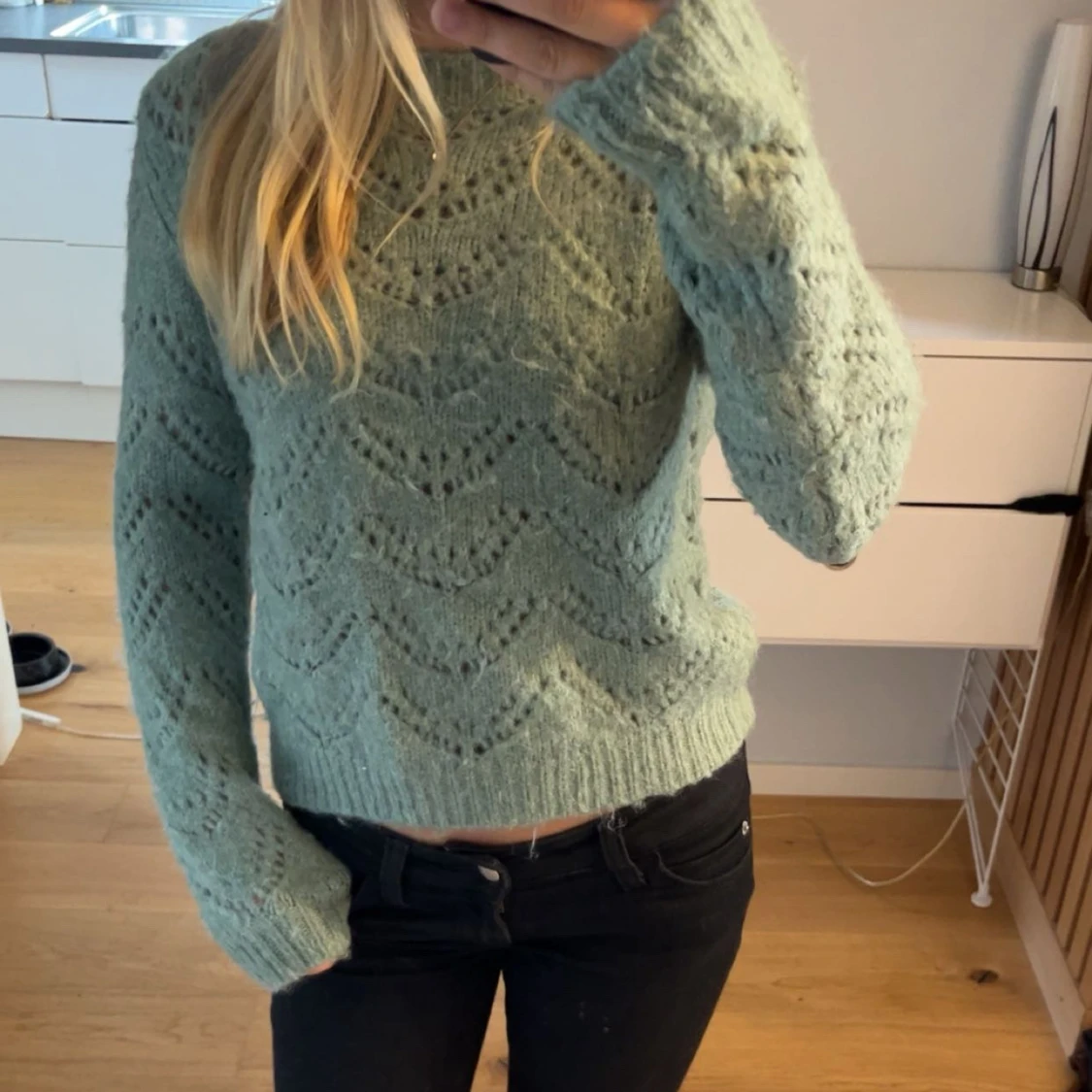 Superfin ljusgrön stickad tröja med vågigt hålmönster. I storlek 152 men passar mig som bär Xs