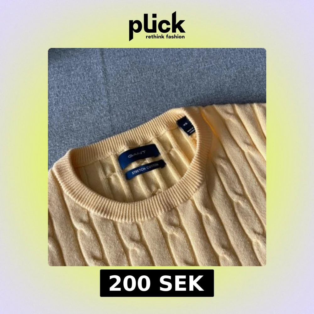 Snygg ljusgul kabelstickad tröja från GANT i stretchig bomull. Klassisk rund hals och diskret broderad logga på bröstet. Perfekt för dig som gillar preppy stil och vill ha en mjuk, bekväm tröja med lite extra färg.