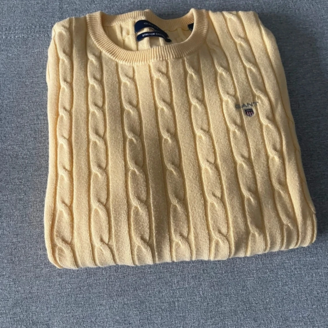 Ljusgul kabelstickad tröja GANT