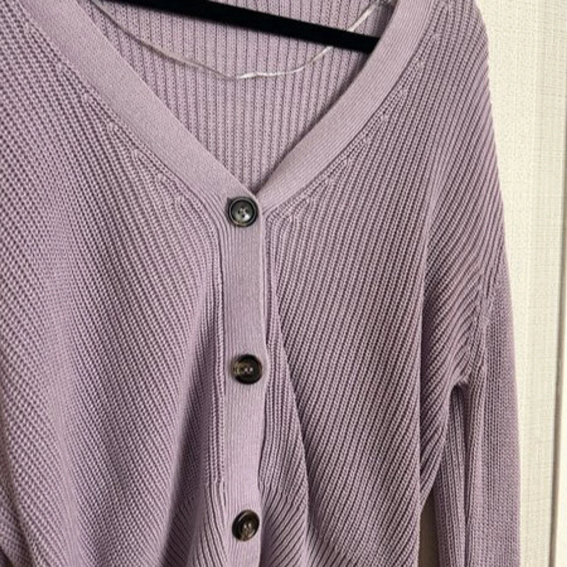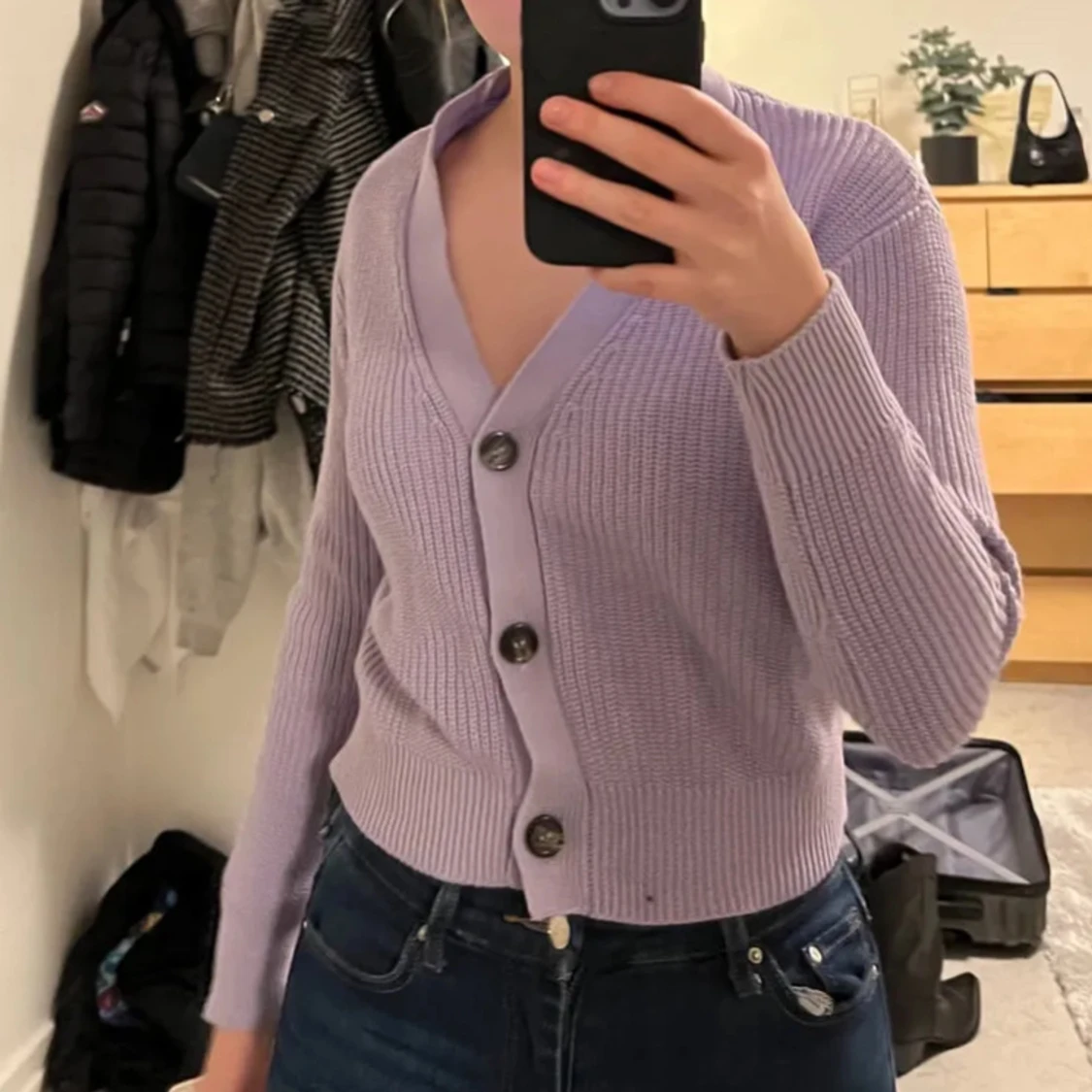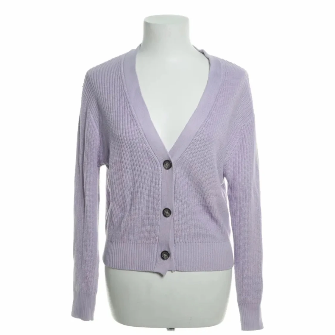 Säljer en superfin ljuslila kofta med stora knappar framtill. Den är stickad och har en v-ringad design som gör den perfekt för både vardag och lite finare tillfällen. Koftan har långa ärmar och en skön passform. Perfekt för vår och höst!