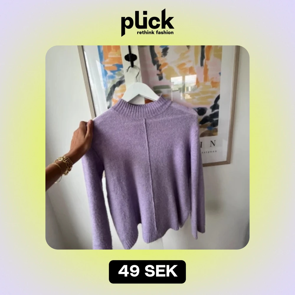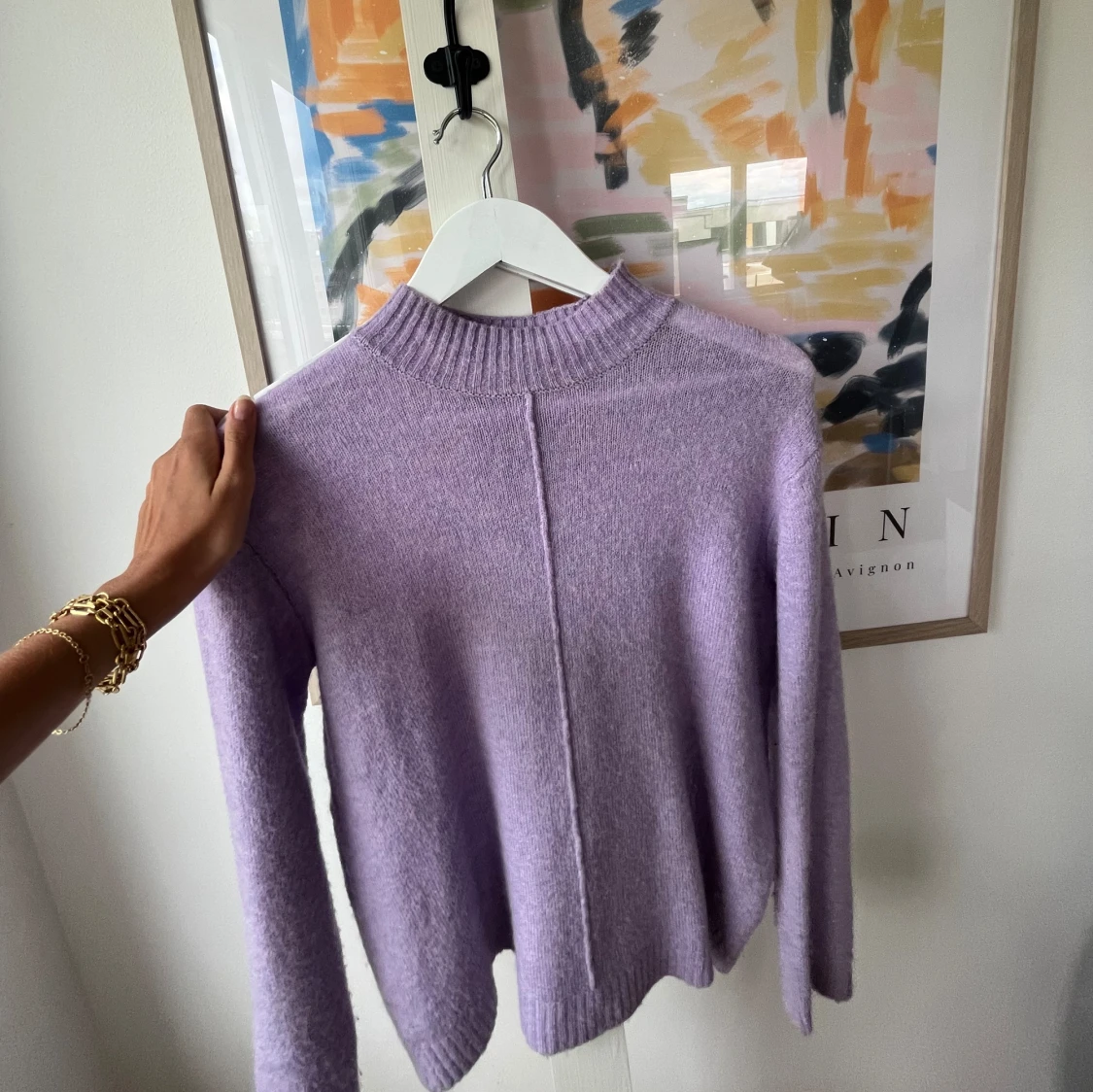 Säljer en superfin ljuslila stickad tröja. Den är riktigt mjuk och skön, perfekt för kyliga dagar. Tröjan har en hög krage och långa ärmar. Den är i nyskick och passar perfekt till höst och vinter. 💜