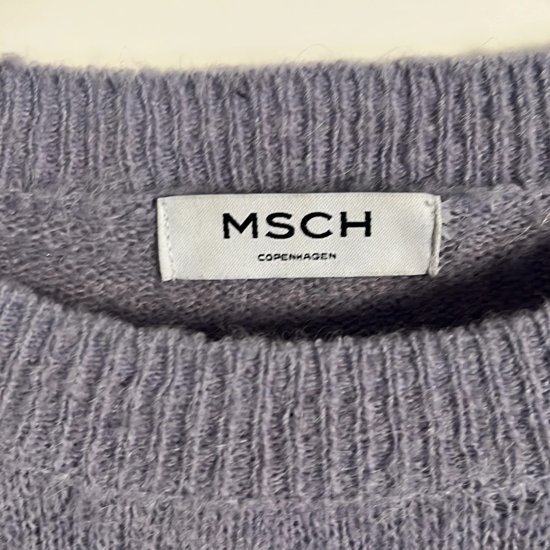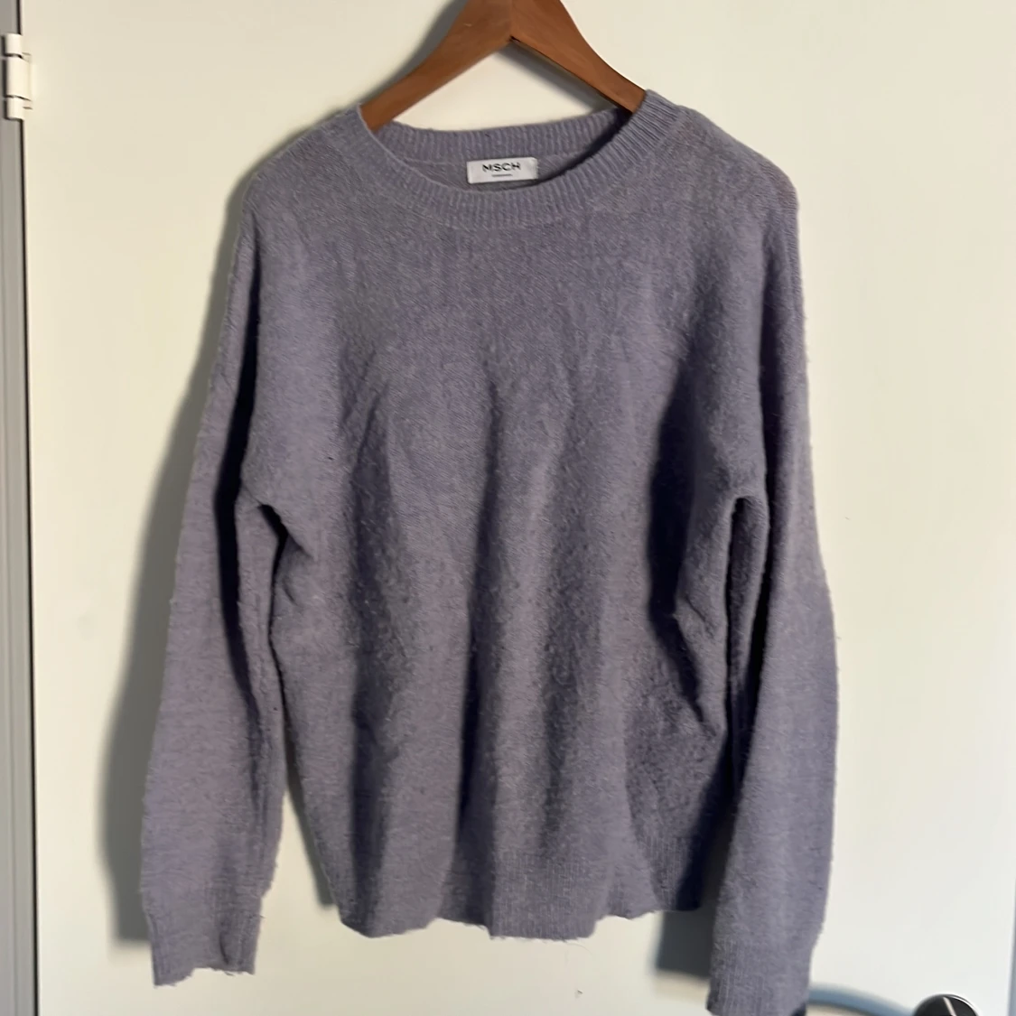 Mysig ljuslila stickad tröja från MSCH Copenhagen. Tröjan har rund halsringning, långa ärmar och en relaxed passform. Perfekt för lager-på-lager under kyliga dagar. Supermjuk och enkel att matcha med jeans eller kjol. Den är storlek M, men tycker mer att den är s.