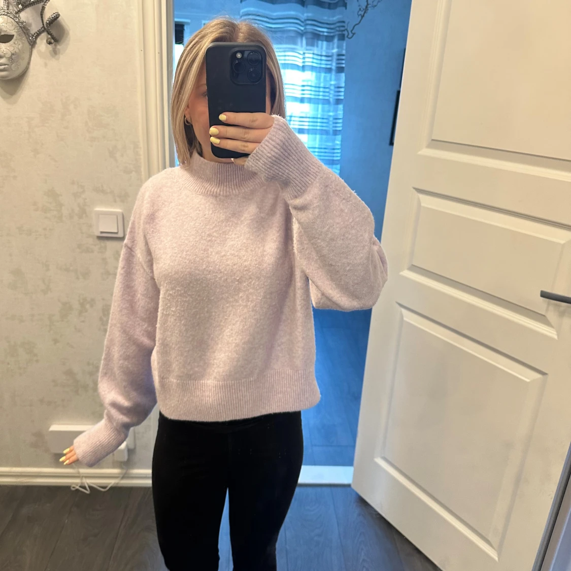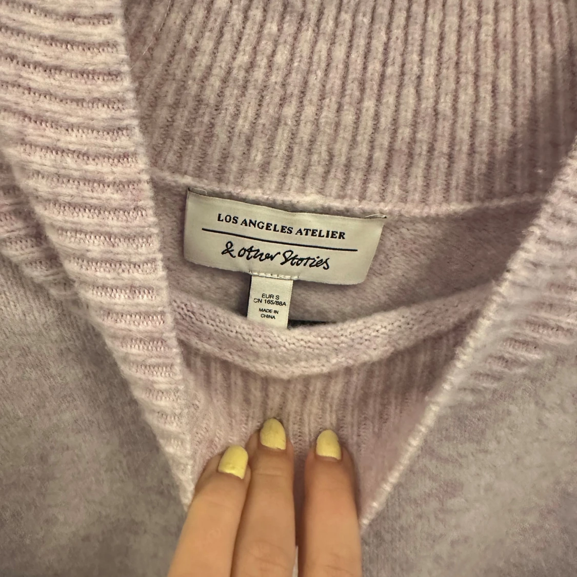 Supermysig ljuslila stickad tröja från & Other Stories Los Angeles Atelier. Tröjan har en relaxed fit med breda ribbade muddar vid hals, ärmslut och nederkant. Perfekt för lager-på-lager och chill vibes.
