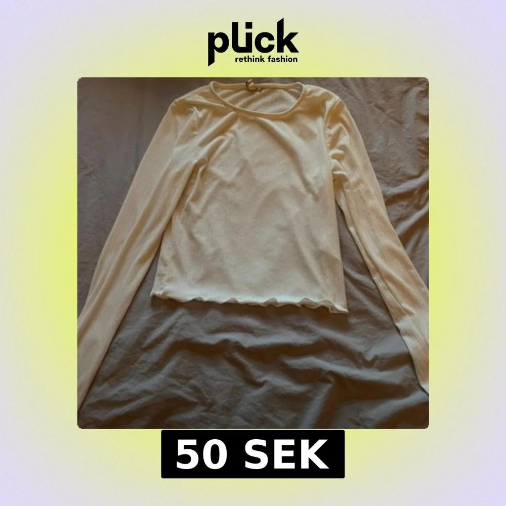 Superfin ljus långärmad topp med ribbad struktur och lätt vågig kant nertill. Tunn och stretchig, perfekt att styla med jeans eller kjol. Enkel och clean look som funkar till många outfits. Storlek M från Nelly!🙌💕