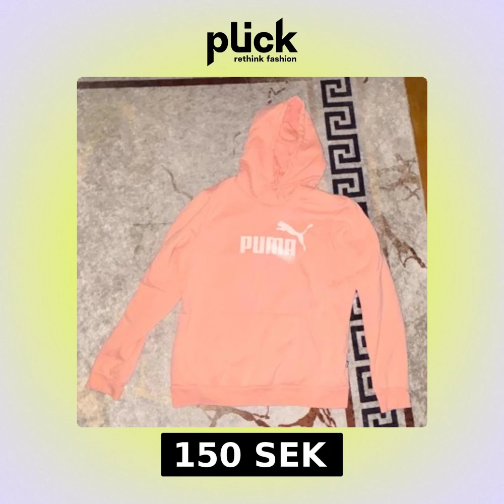 Säljer en ljusrosa hoodie från Puma med vit logga på bröstet. Tröjan har huva, lång ärm och en stor magficka framtill. Perfekt för dig som gillar sportiga och bekväma plagg med stilren design.