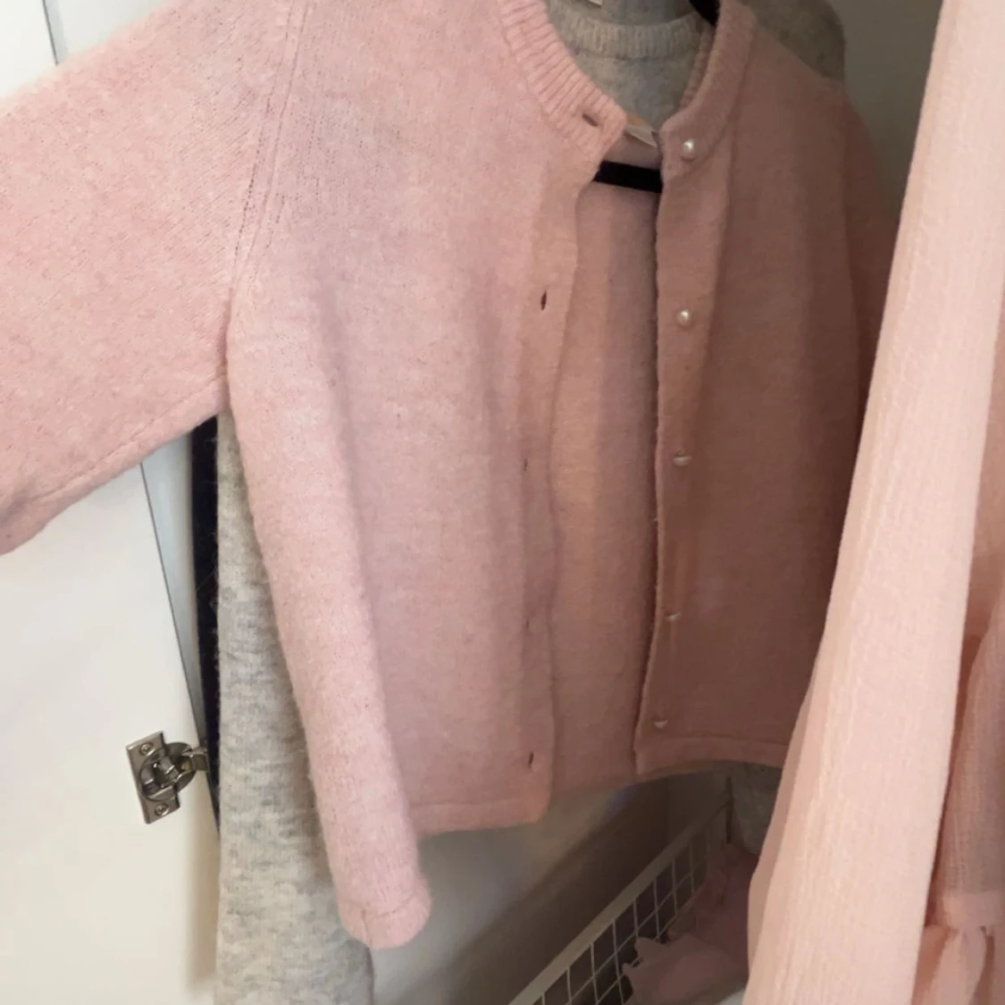 Superfin ljusrosa kofta med rund hals och knäppning framtill. Koftan är stickad och har långa ärmar, perfekt att slänga över en t-shirt eller klänning. Enkel och stilren design som passar till det mesta.