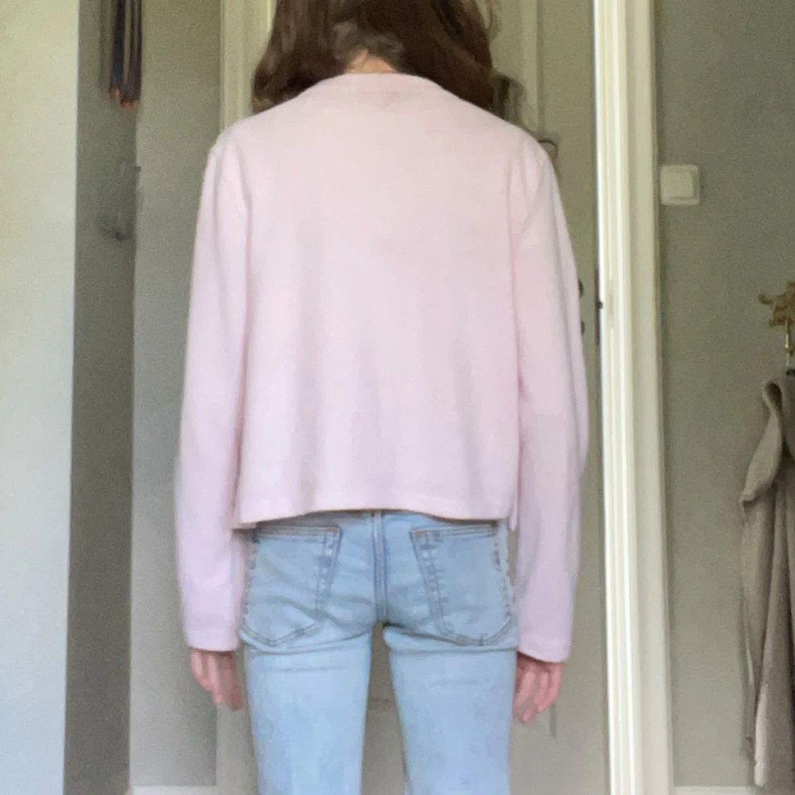 Supersöt ljusrosa kofta från 157 i stickat material. Koftan har lång ärm och knyts framtill med en rosett vid halsen. Perfekt att slänga över en topp för en gullig och trendig look. Passar dig som gillar en feminin och enkel stil.