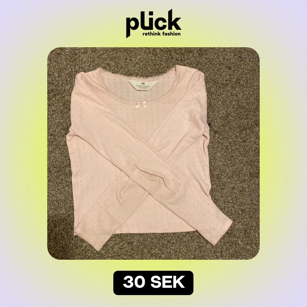 Säljer en söt ljusrosa långärmad topp från H&M. Den har ett diskret hålmönster och en fin liten rosett vid halsringningen. Perfekt för vår och sommar! 🌸