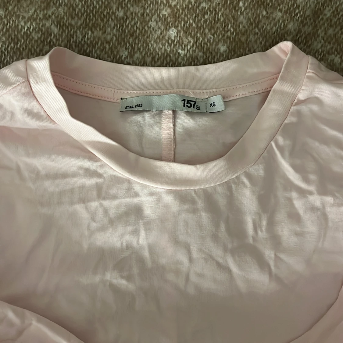 Säljer en ljusrosa långärmad tröja från 157 i storlek XS. Tröjan har en enkel och clean design med rund halsringning och är gjord i mjuk bomull. Perfekt för vår och sommar när du vill ha något lätt och fräscht.
