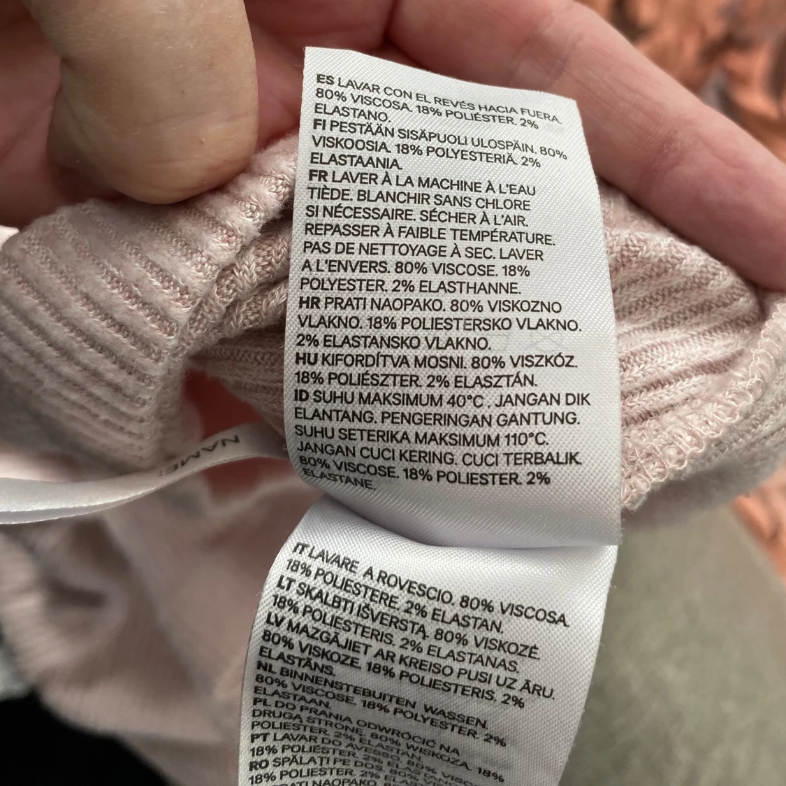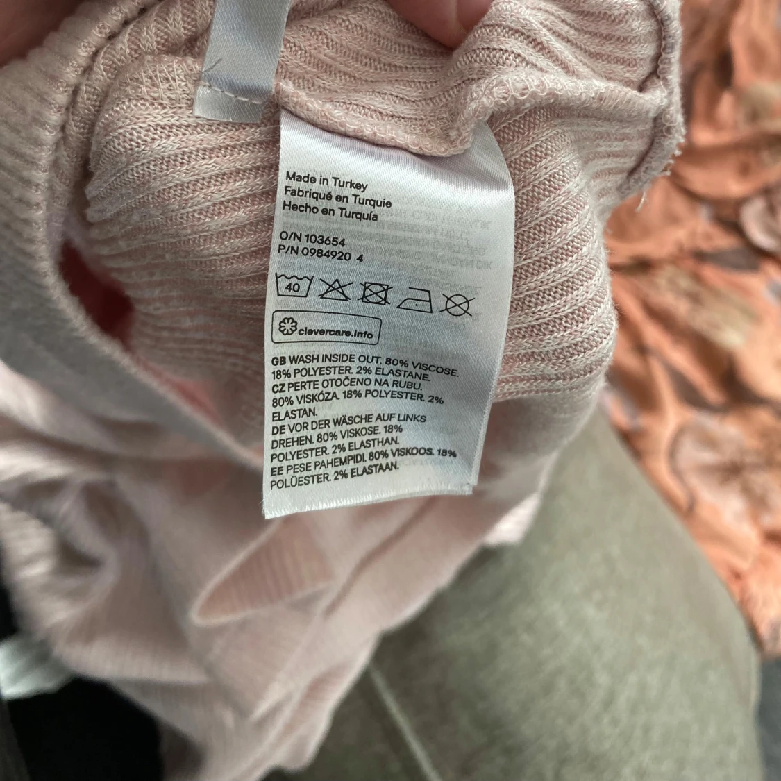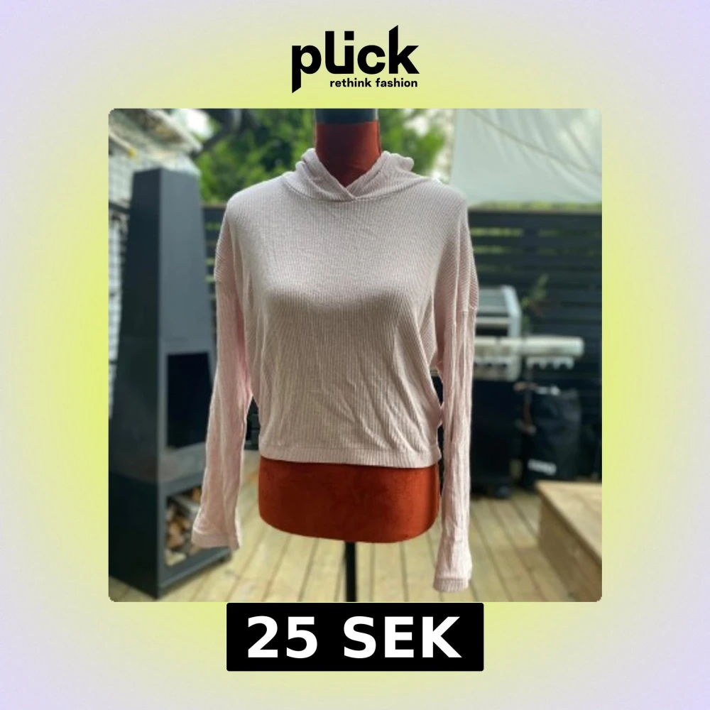 Ljusrosa ribbstickad hoodie med långa ärmar. Den har en avslappnad passform och är i storlek 170. Perfekt för en avslappnad och bekväm stil. Längd: 50 cm Bystvidd: 54 cm Resår i nederkant 80% viskos, 18% polyester, 2% elastan Inga bilder när den sitter på mig! Katter finns i hemmet!