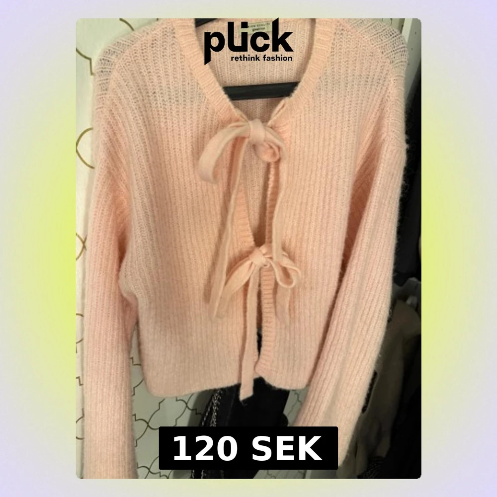Superfin ljusrosa stickad kofta från Gina Tricot i storlek S. Koftan har två söta knytband framtill och är ribbstickad med långärmade ärmar. Perfekt för att ge din outfit en mjuk och cozy vibe.