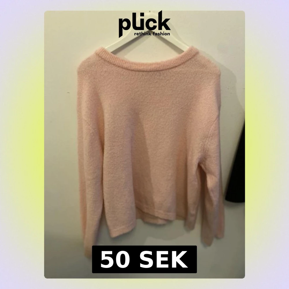 Mysig ljusrosa stickad tröja med rund hals och långa ärmar. Perfekt för att hålla sig varm under kyliga dagar. Enkel och stilren design som är lätt att matcha med dina favoritjeans eller kjol.