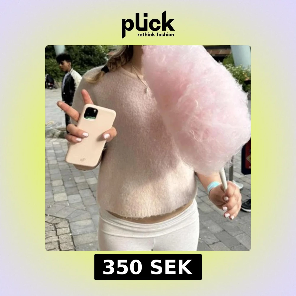 Mysig ljusrosa stickad tröja från Lindex med trekvartsärmar. Perfekt för en avslappnad stil. Tröjan har en rund halsringning och en mjuk, fluffig textur.