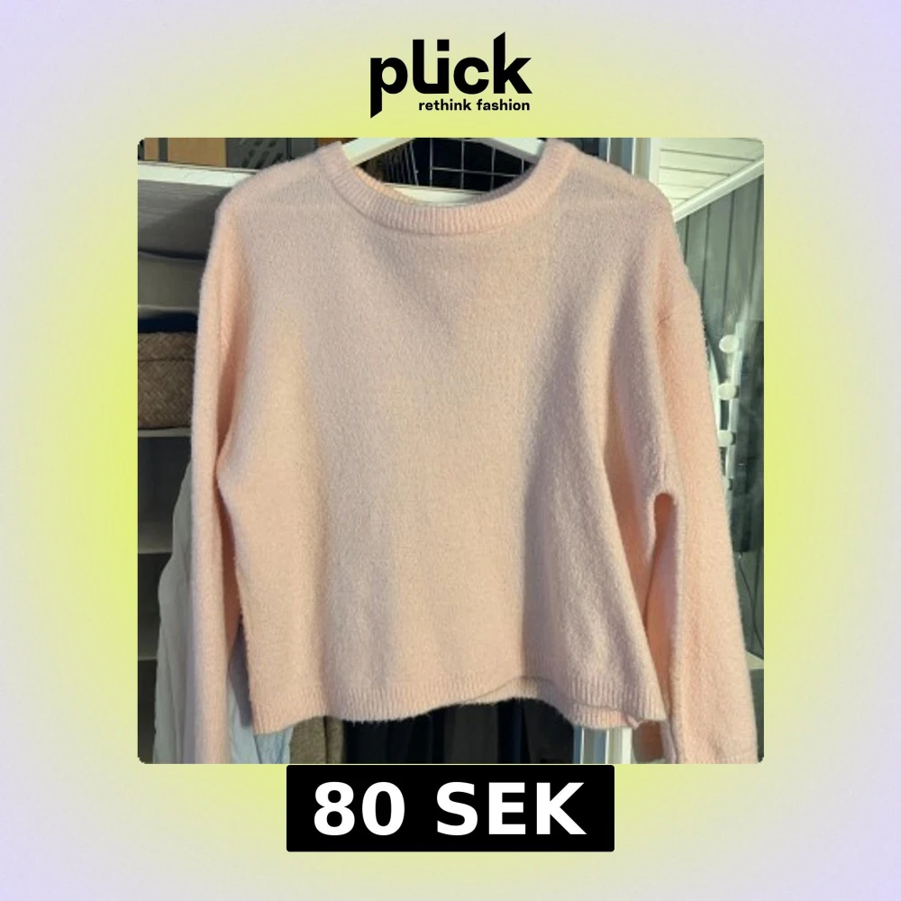 Mysig ljusrosa stickad tröja med rund hals och långa ärmar.
