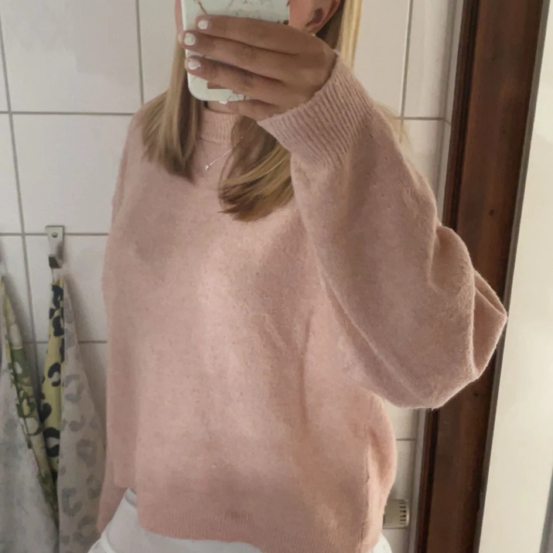 En ljusrosa stickad tröja från H&M. Lite nopprig och finns tecken på användning, men fortfarande i bra skick. Kan visa fler bilder, slutsåld på hemsidan💓